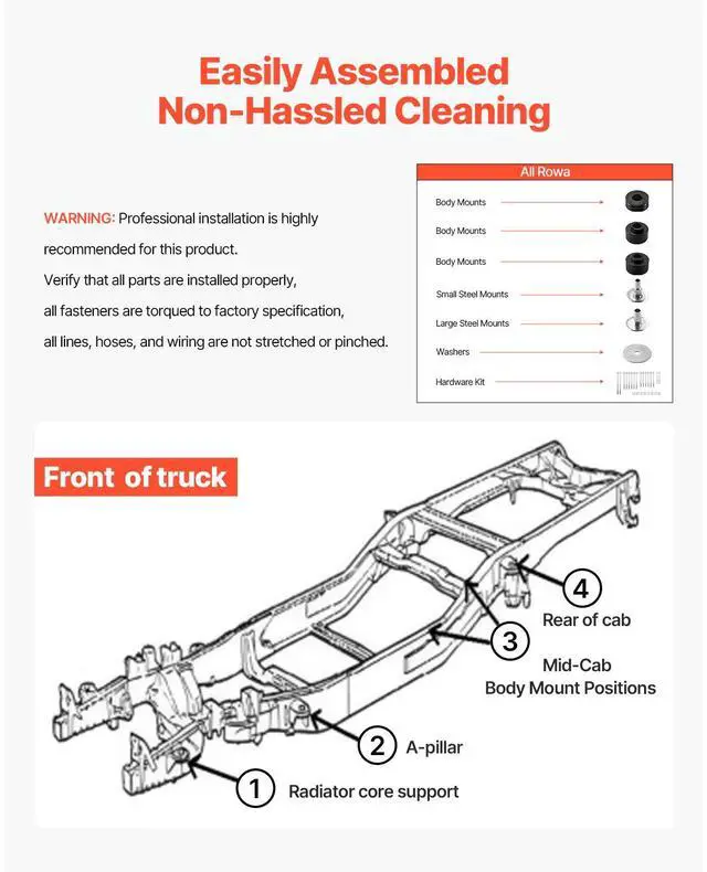 Body Mount Bushing Kit Compatible with 1999-2007 Ford F250 F350 60 PCS Black