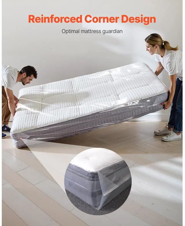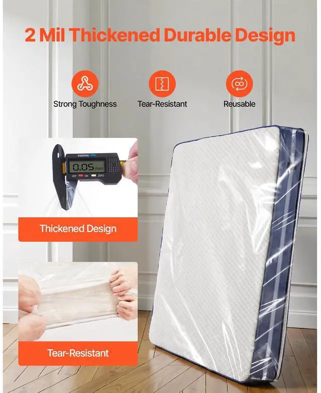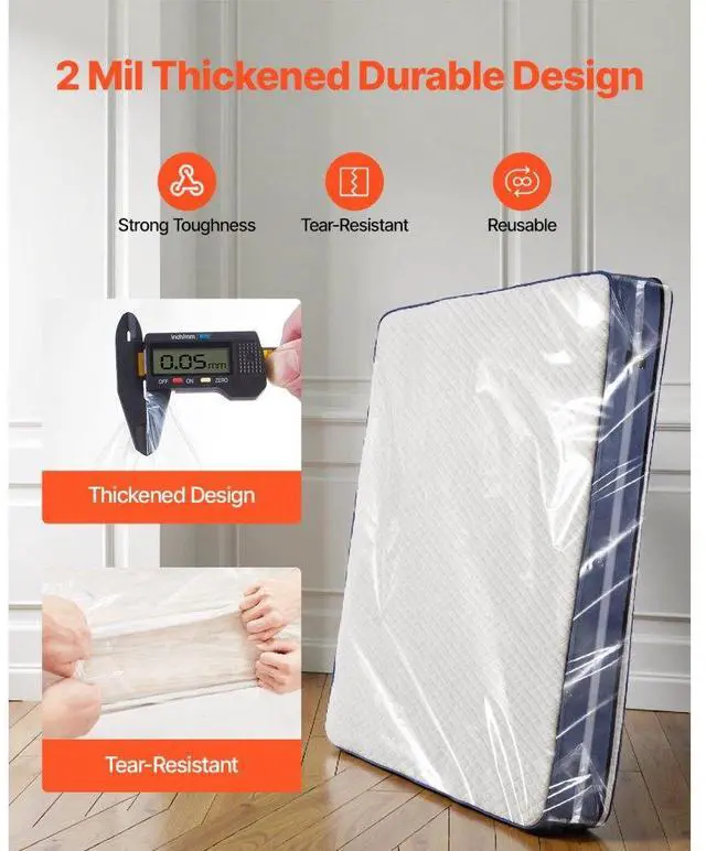 Plastic Mattress Bag 2 PK Bed Cover for Moving and Storage (2 Mil & Queen Size)