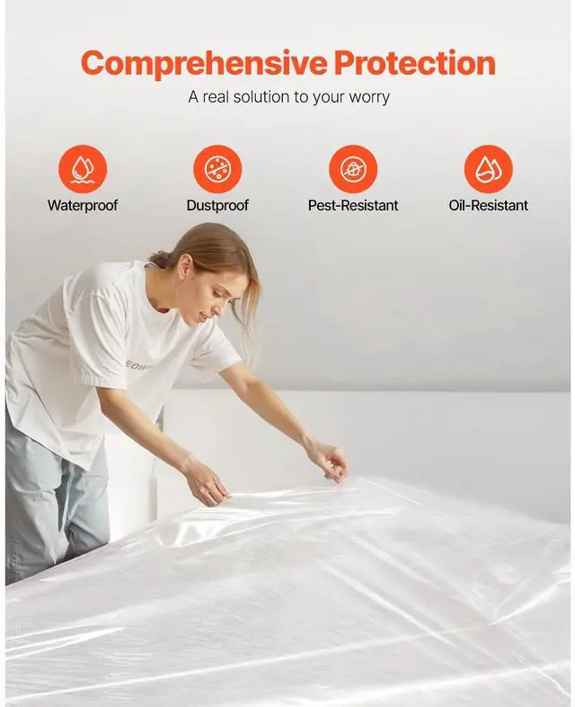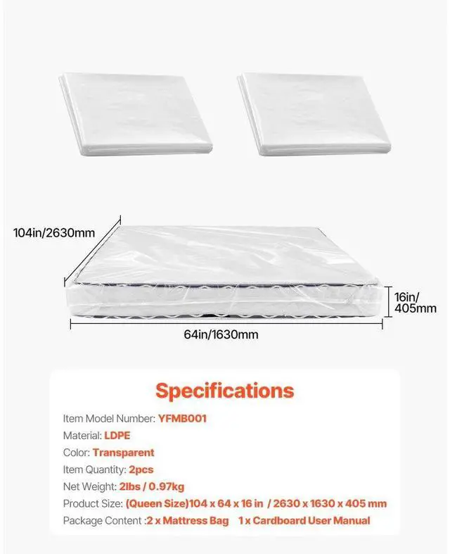 Item Quantity: 2 Pack,Color: Transparent,Item Model Number: YFMB001,Material: LDPE,Net Weight: 2 lbs / 0.97 kg,Product Size: (Queen Size) 104 x 64 x 16 in / 2630 x 1630 x 405 mm