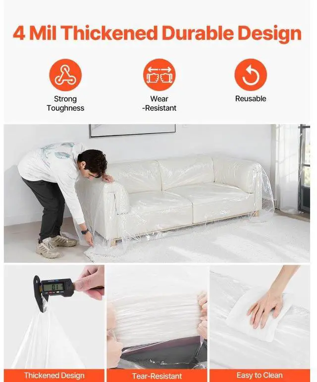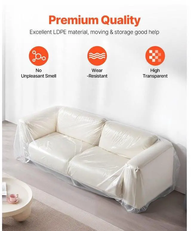 Plastic Couch Cover 4 Mil Clear Thicker Couch Cover for Moving 92 x 62 x 42 inch