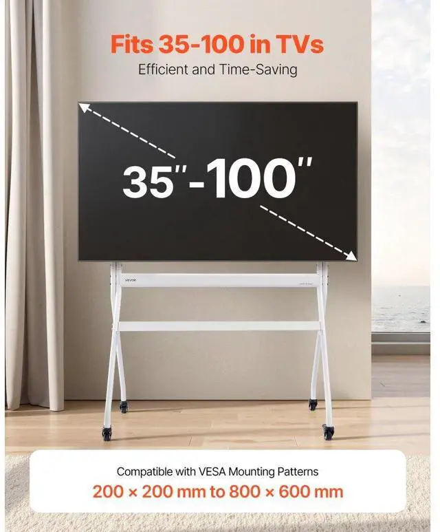 VEVOR Rolling TV Stand, Mobile TV Cart for 35-100 Inch LED/LCD/OLED Flat/Curved TVs, Portable Monitor Stand with Wheels Hold up to 198 lbs for Living Room, Bedroom, Office, Outdoor, Max VESA 800x600mm