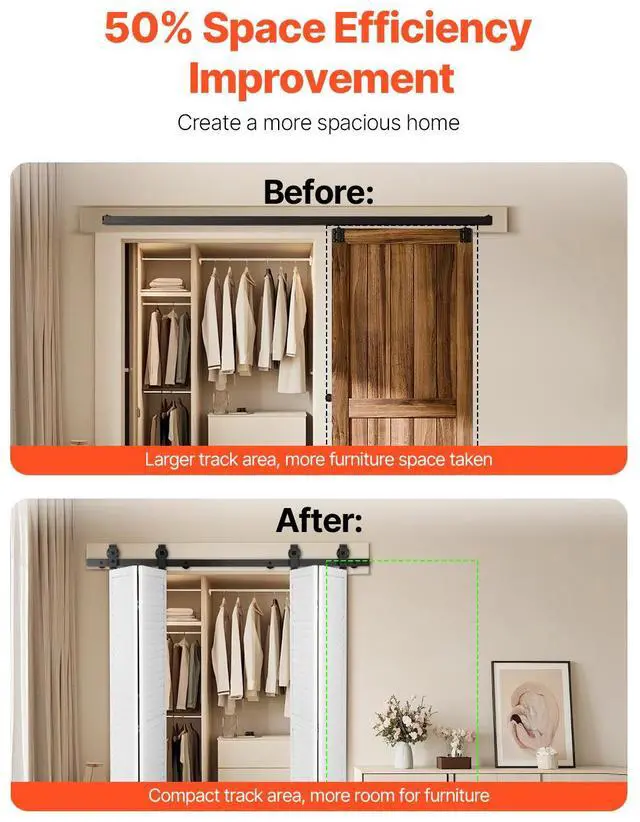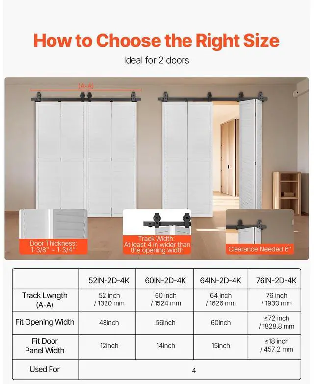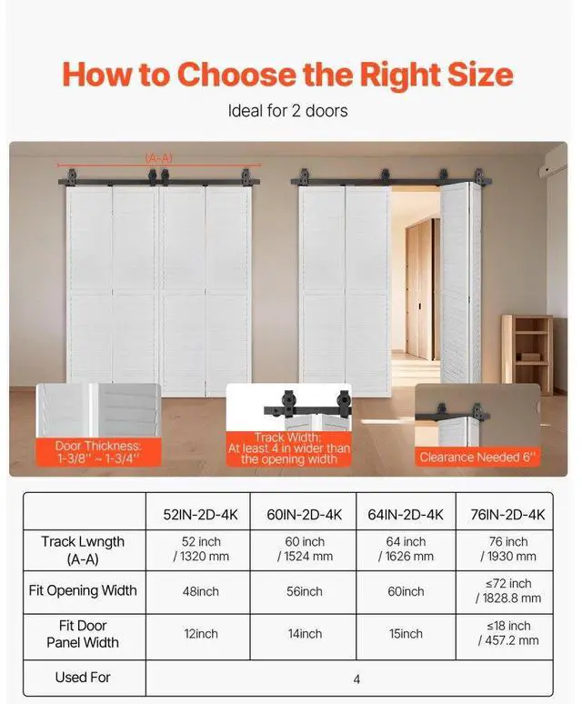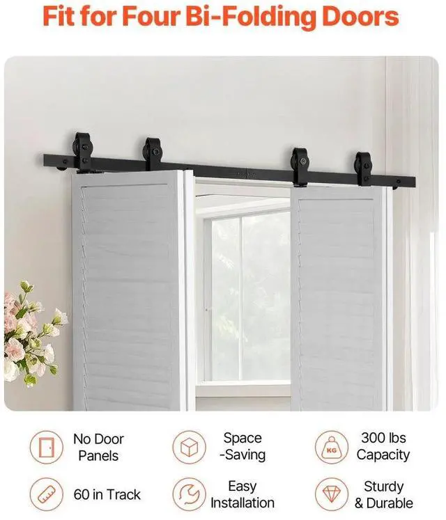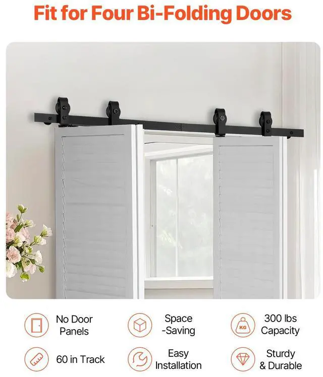 Bi-Folding Sliding Barn Door Hardware Track Kit 60" for Four 14" Doors