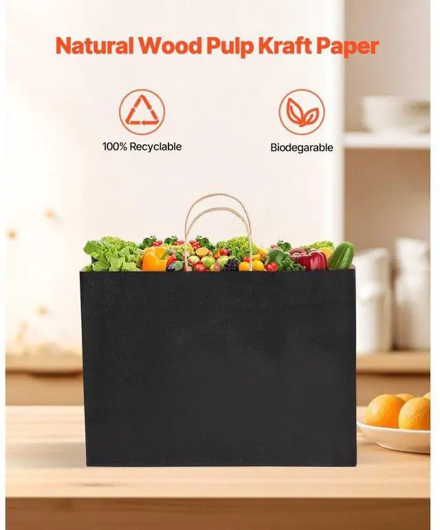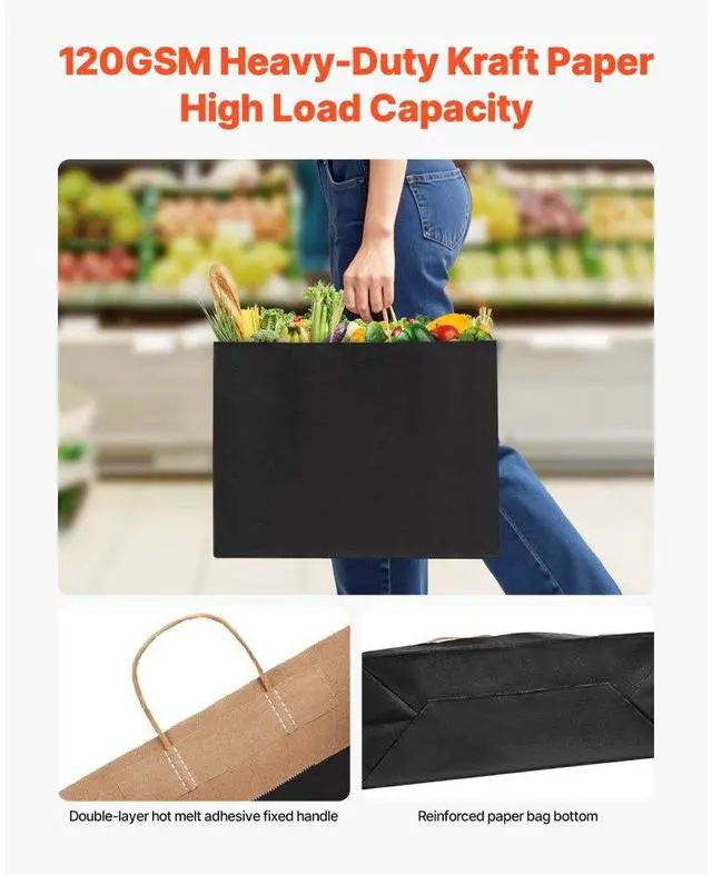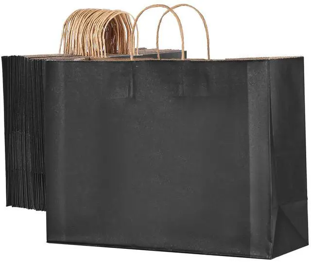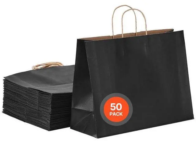 Kraft Paper Bags with Handles 50Pcs 16x6x12 in Party Shopping Retail Bag Black