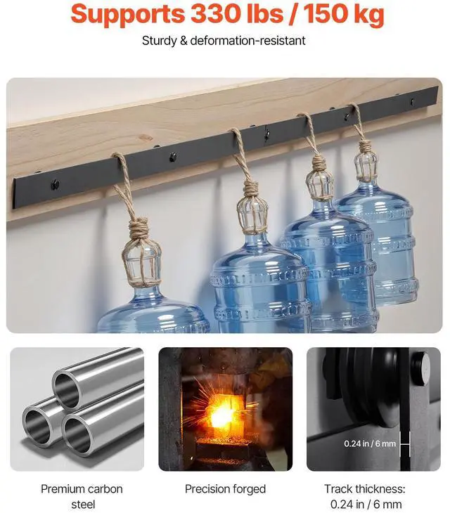 VEVOR 5FT Sliding Barn Door Hardware Kit for Single Sliding Barn Door Black