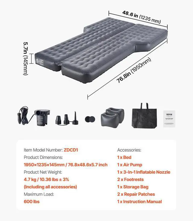 Maximum Load: 600 lbs,Item Model Number: ZDCD1,Product Weight: 4.7 kg / 10.4 lbs,Product Dimensions: 1950x1235x145 mm / 76.8x48.5x5.7 inch