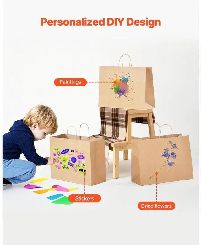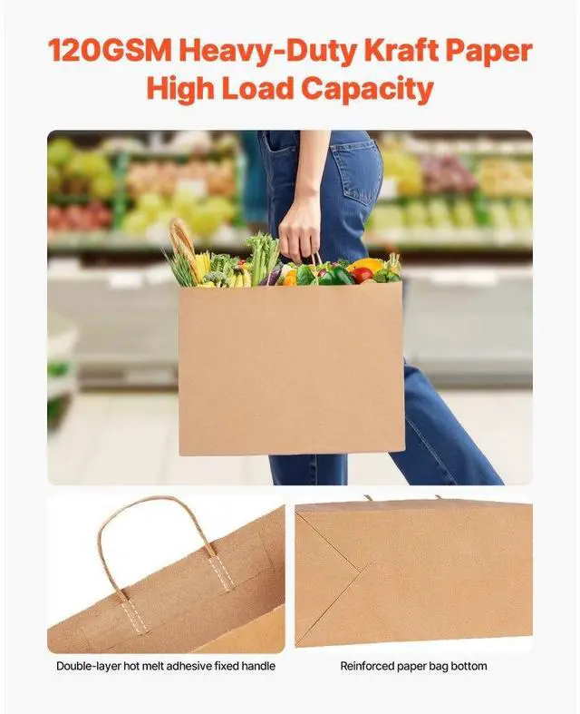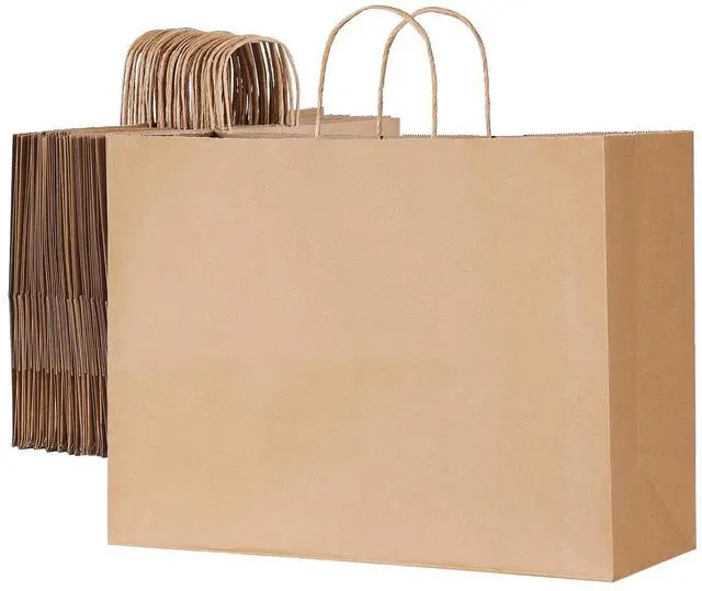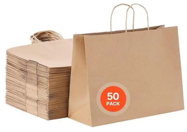 Kraft Paper Bags with Handles 50Pcs 16x6x12 in Party Shopping Retail Bag Brown