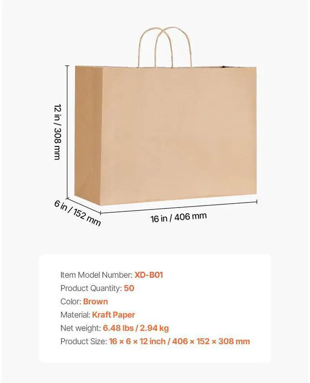 Type: With Rope,Color: Natural / Brown,Item Model Number: XD-B01,Quantity per Box: 50,Product Dimensions: 16 × 6 × 12 inches / 406 × 152 × 308 mm,Net Weight: 6.48 lbs / 2.94 kg,Main Material: Kraft Paper