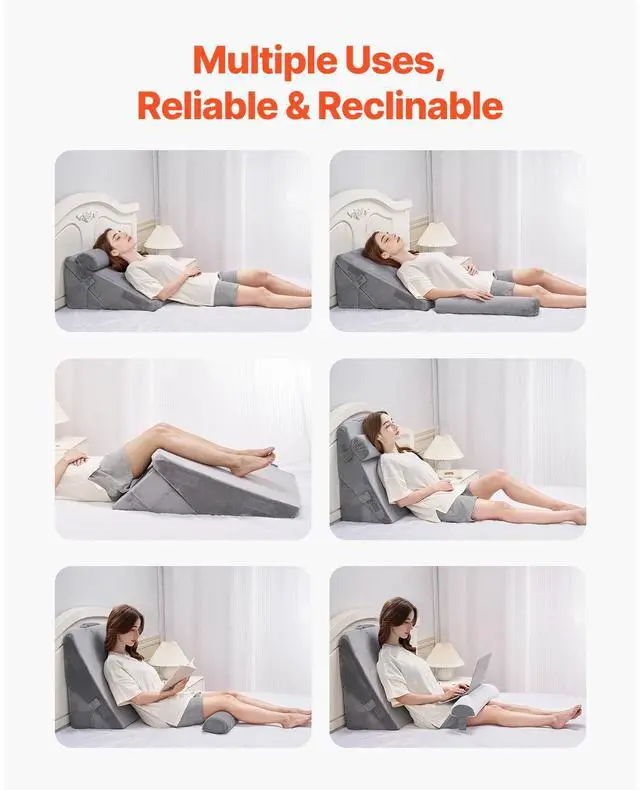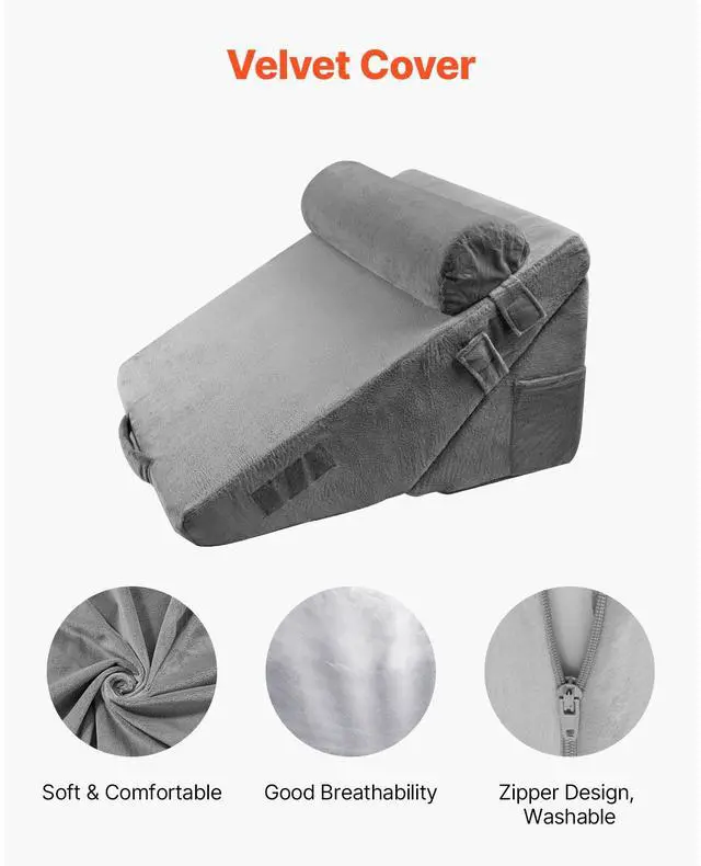 Bed Wedge Pillow for Sleeping, 3 Pcs Adjustable Orthopedic Bed Wedge Set, with Washable Cover & Foam Support, Post Surgery Pillow for Acid Reflux, Back Pain, Snoring Relief & GERD, Dark Grey