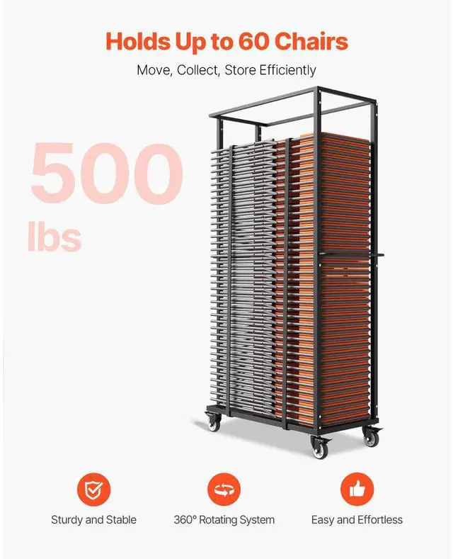 • VEVOR Folding Chair Rack Cart for 60 Chairs of 500LBS Casters/Locking Wheels