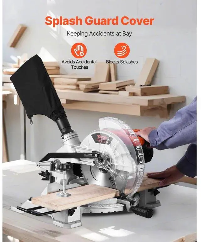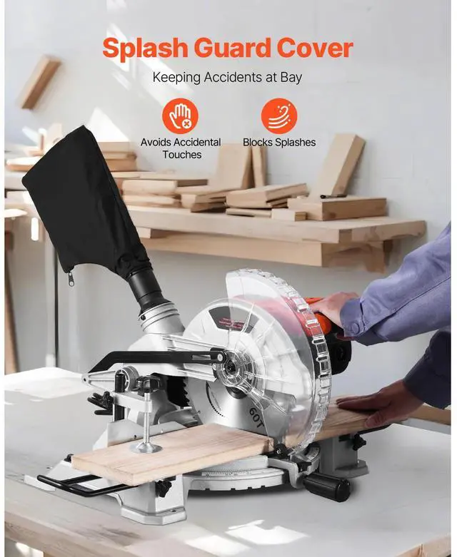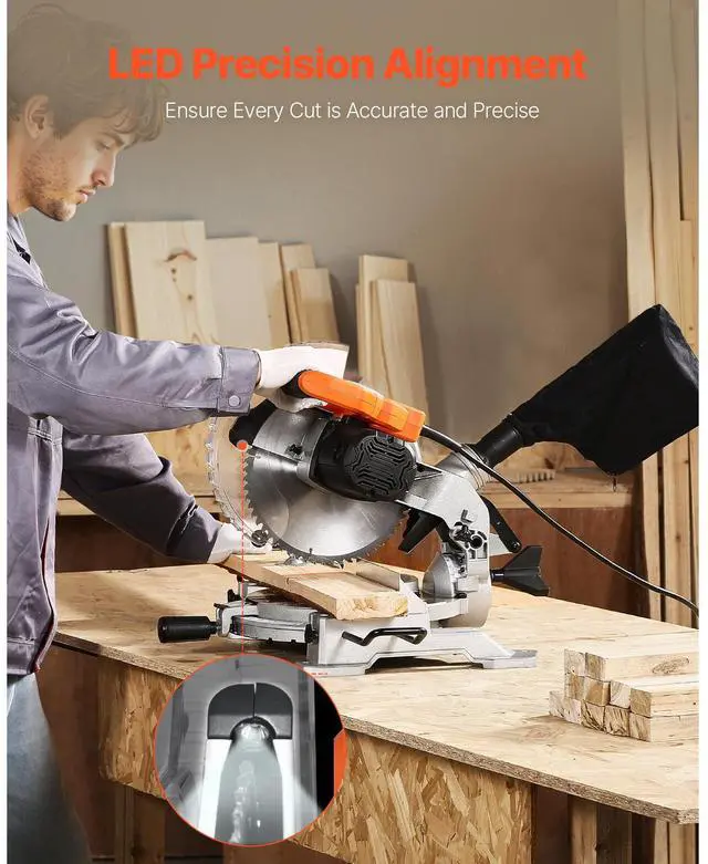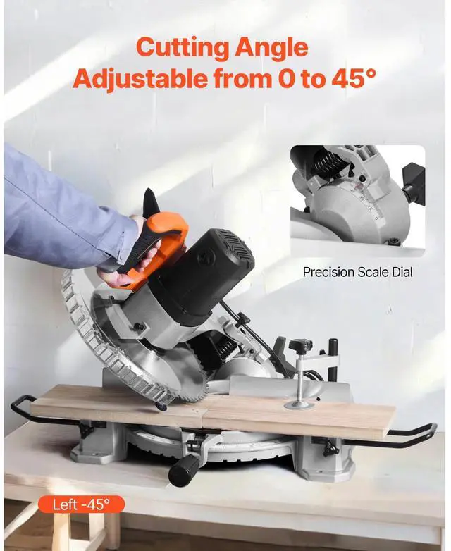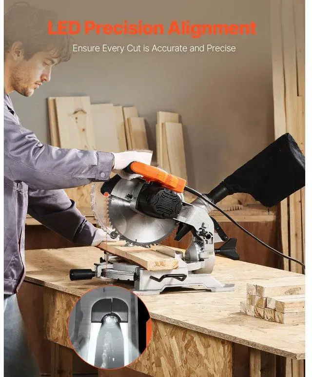 Compound Miter Saw 10-Inch Blade 15 Amp Motor 60-Tooth Corded Single Bevel 0-45°