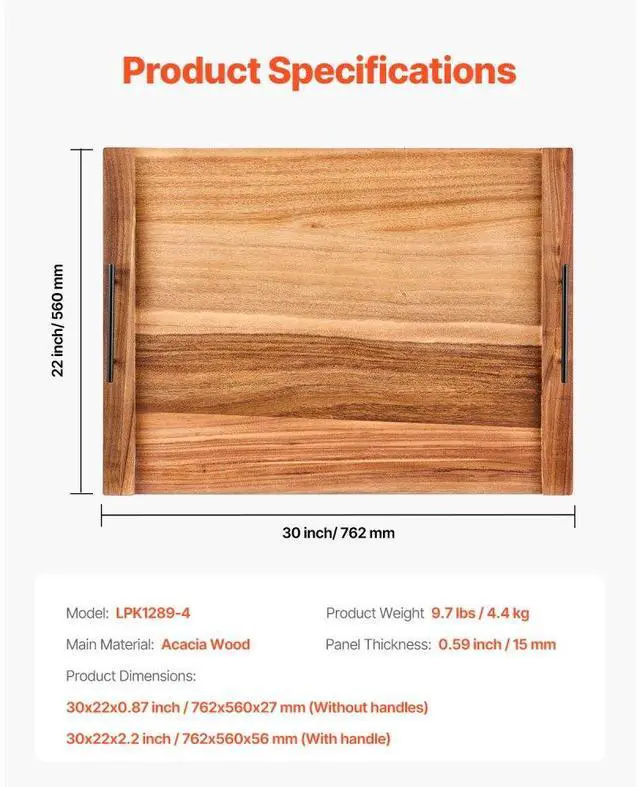 Surround Panel Thickness: 0.47 inch / 12 mm,Color: Natural Wood,Item Model Number: LPK1289-4,Cover Panel Thickness: 0.59 inch / 15 mm,Product Weight: 9.7 lbs / 4.4 kg,Dimensions: 30x22 inch / 76.2x55.88 cm,Main Material: Acacia Wood