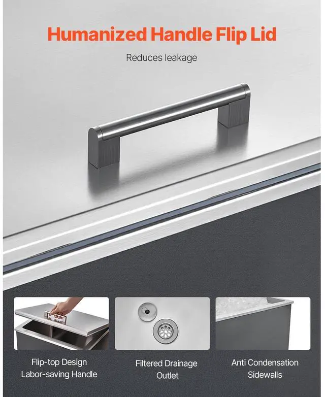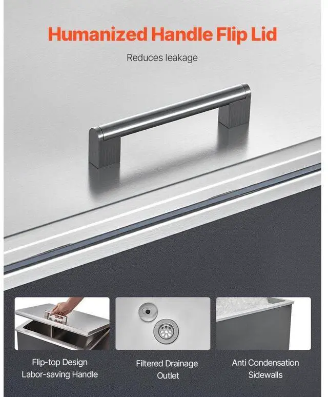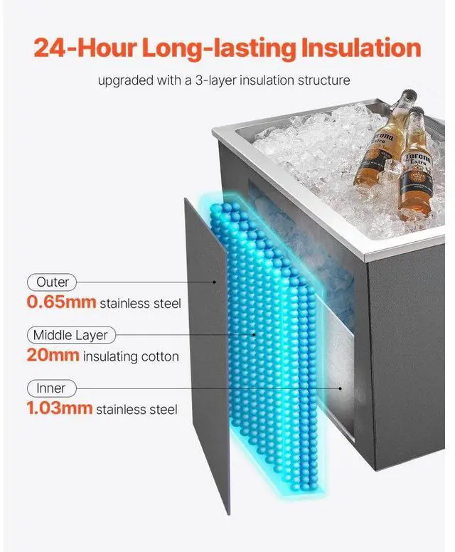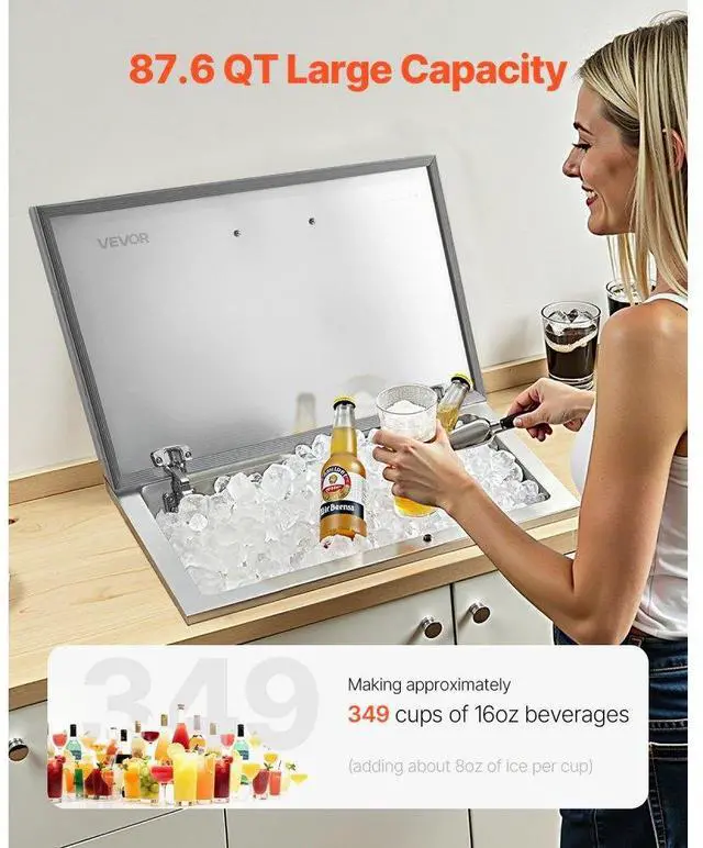 • VEVOR 87.6 Qt Drop in Ice Chest Ice Cooler Ice Bin Stainless Steel 28"x16"x17"