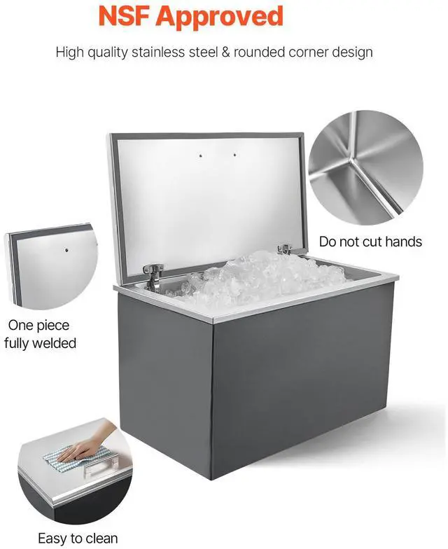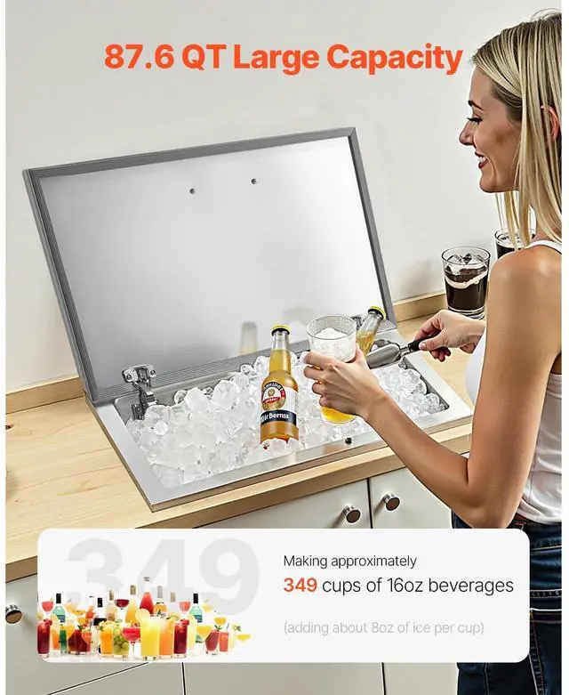 87.6 Qt Drop in Ice Chest Ice Cooler Ice Bin Stainless Steel 28"x16"x17"