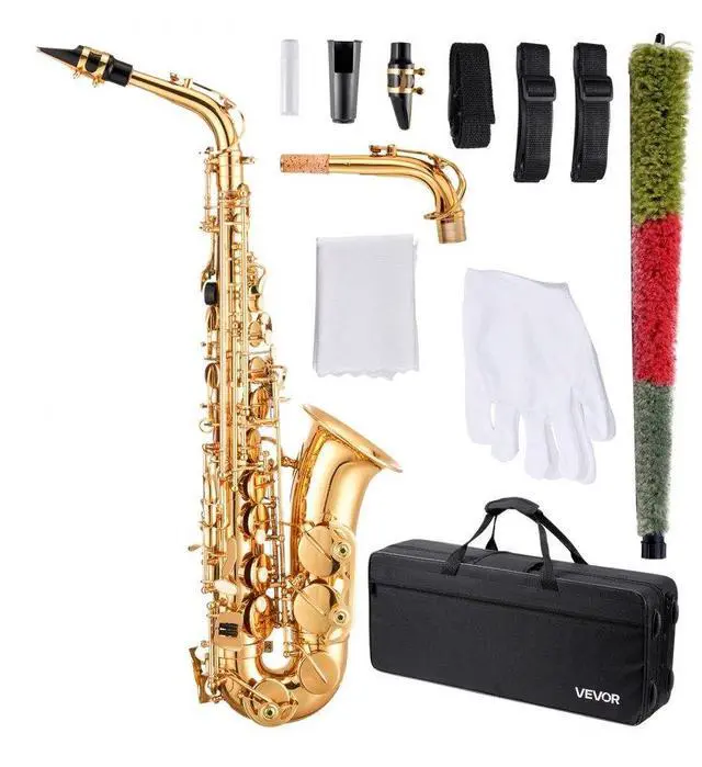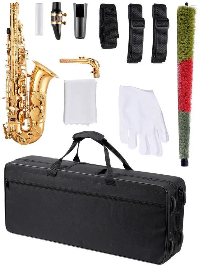 Gold Brass Alto Saxophone Eb E Flat Sax Beginner Kit with Case Straps Mouthpiece