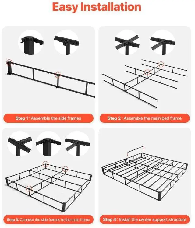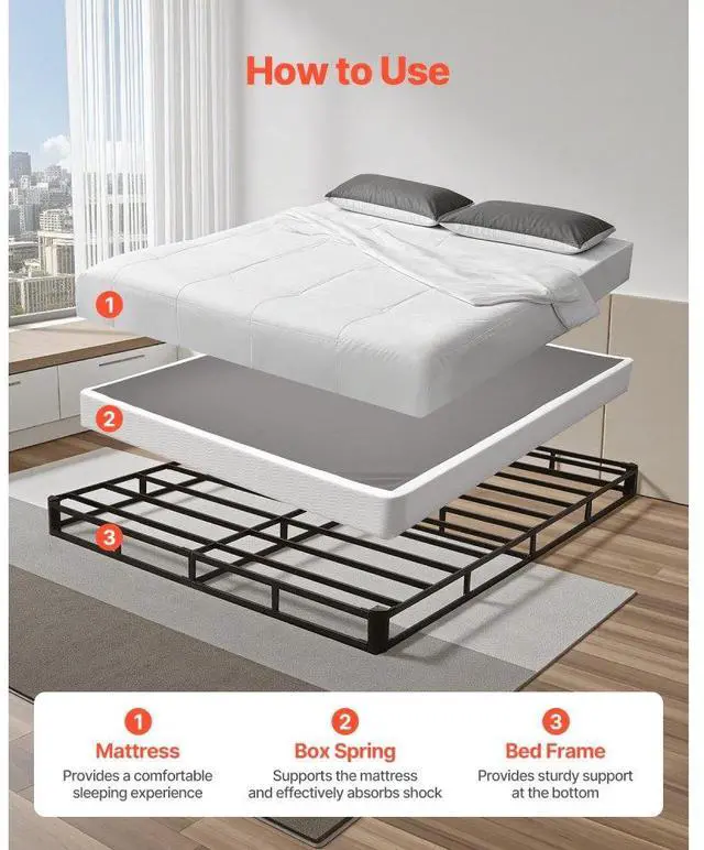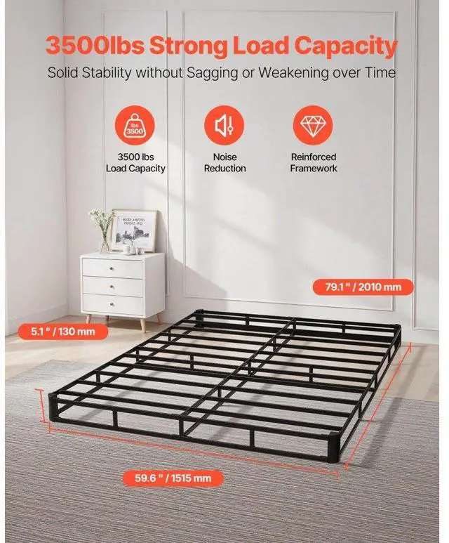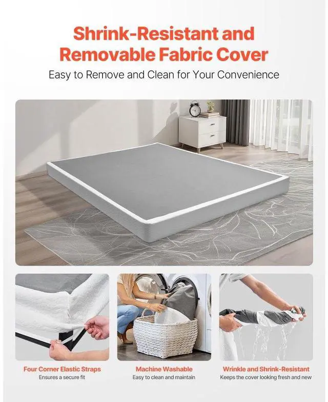 VEVOR Box Spring, Queen Size Bed Frame with Washable Fabric Cloth, Heavy Duty Metal Frame for Queen Bed, 5 in Mattress Foundation, 3500 lbs Max Weight Capacity, Easy Assembly, 79.1L x 59.6W x 5.1H in