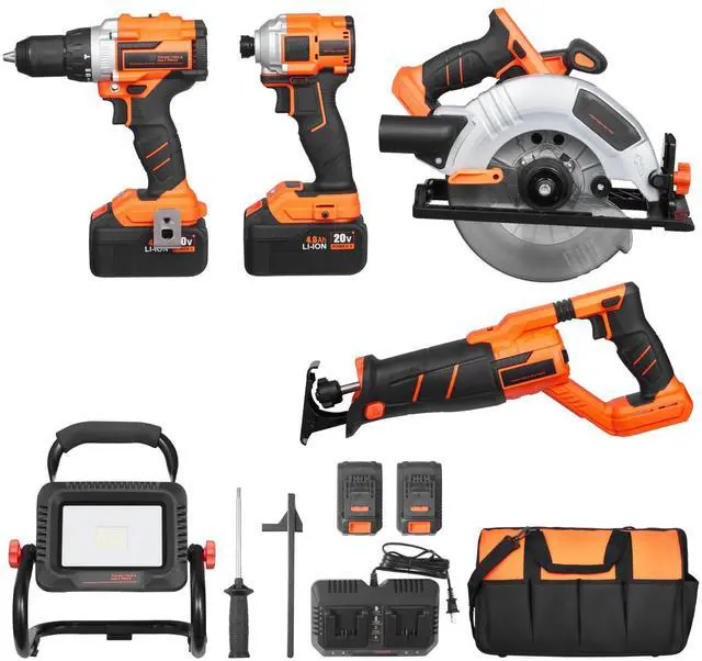 Combination Type: Impact Drill + Impact Driver + Reciprocating Saw + Circular Saw + Work Light,Motor Type: Brushless Motor,Product Weight: 26.6 lbs / 12.06 kg,Rated Voltage: DC 20V
