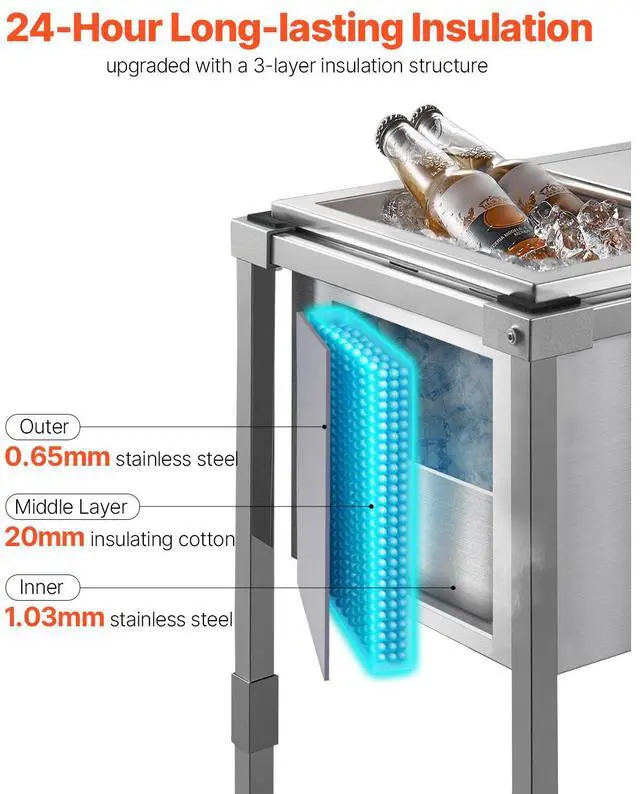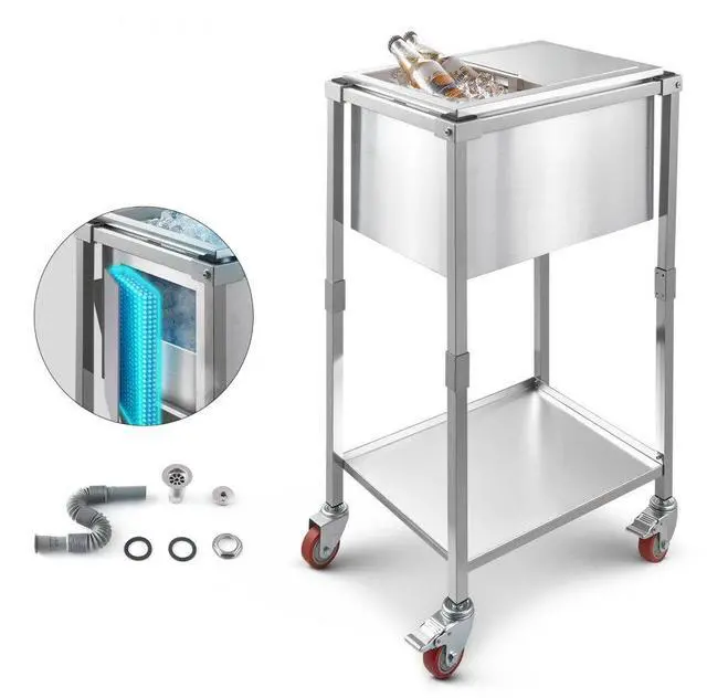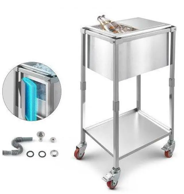• VEVOR 29.6 Qt Rolling Ice Chest Cooler Cart Outdoor Stand Up Ice Bin on Wheels