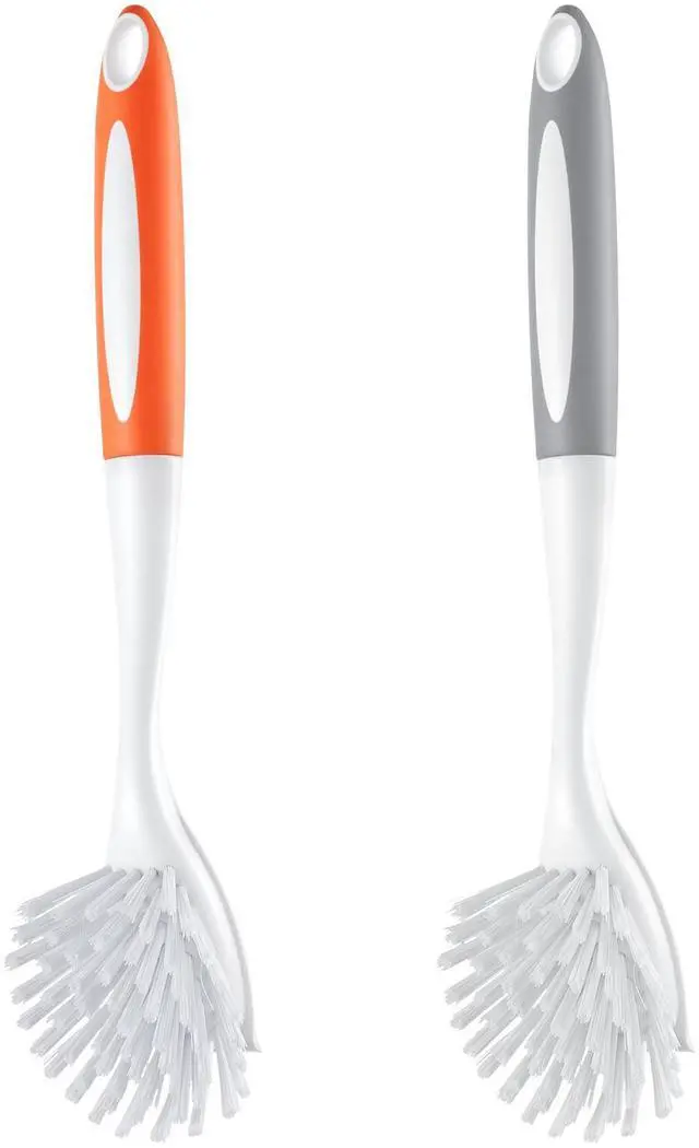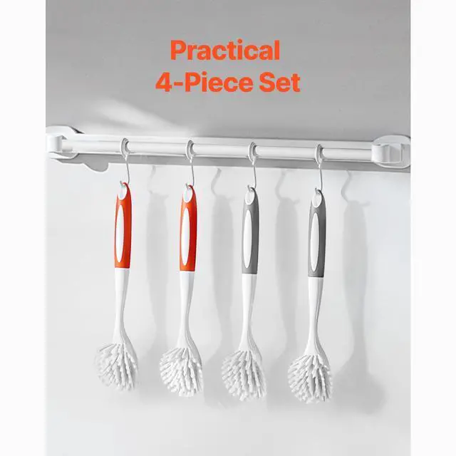 Dish Brush 4 Pack Kitchen Scrub Brushes with PP Handle 2 Gray + 2 Orange