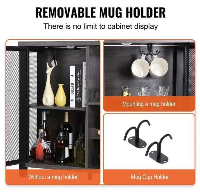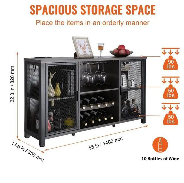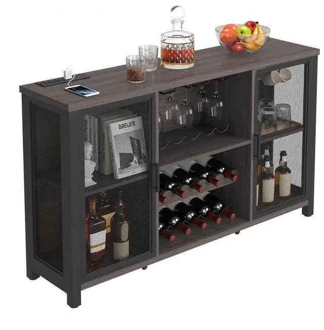 VEVOR 55 Inch Industrial Bar Cabinet, Wine Table for Liquor and Glasses, Sideboard Buffet Cabinet with Wine Rack, Freestanding Farmhouse Wood Coffee Bar Cabinet for Living Room, Home Bar, and Kitchen Ample Storage Space Convenient Outlet Quality Board Thoughtful