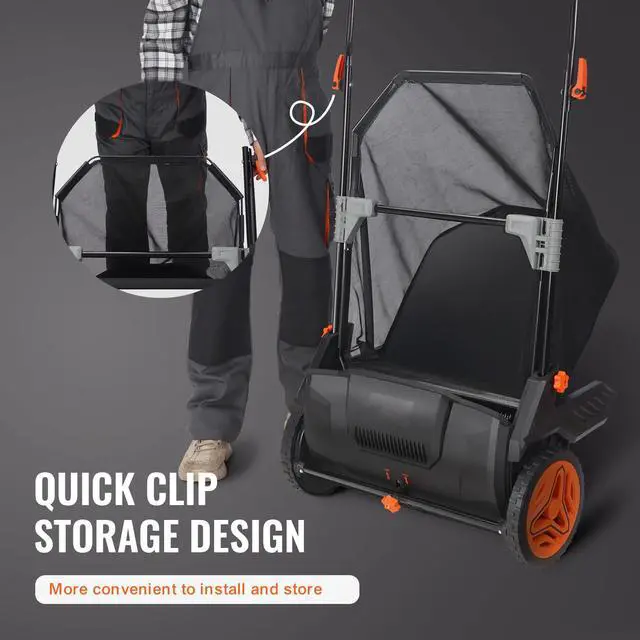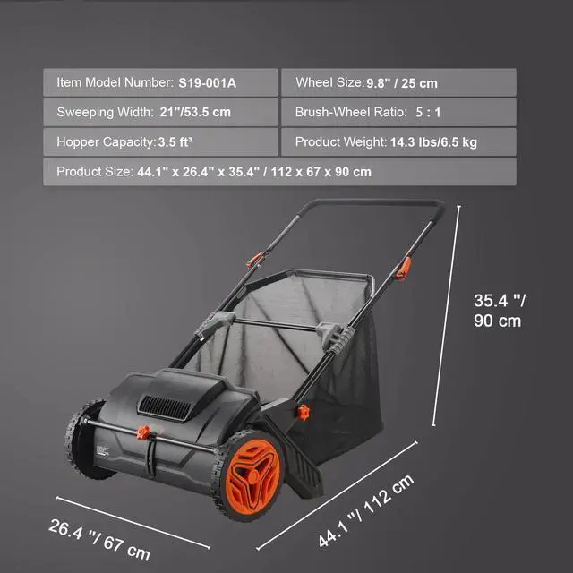 VEVOR Push Lawn Sweeper, 21-inch Leaf & Grass Collector, Strong Rubber Wheels & Heavy Duty Thickened Steel Durable to Use with Large Capacity 3.5 cu. ft. Mesh Collection Hopper Bag, 2 Spinning Brushes Thickened Brush Structure Large-Capacity Hopper Bag Flexible Storage & Installation Comfortable Cleaning Efficient Sweeping System Versatile