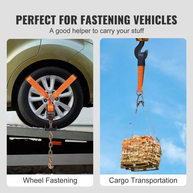 VEVOR Car Tie Down with Chain Anchors, Lasso Style 2"×120" Tire Straps, 5865 LBS Working Load, 11023 LBS Breaking Strength, with Heavy Duty Ratchets for Passenger Car, ATV, SUV, UTV, Truck, 4-Pack Exceptional Durability Versatile Application Reliable and Comfortable Easy to Operate Secure Load Versatile Adaptability Working Capacity: 5865 lbs,