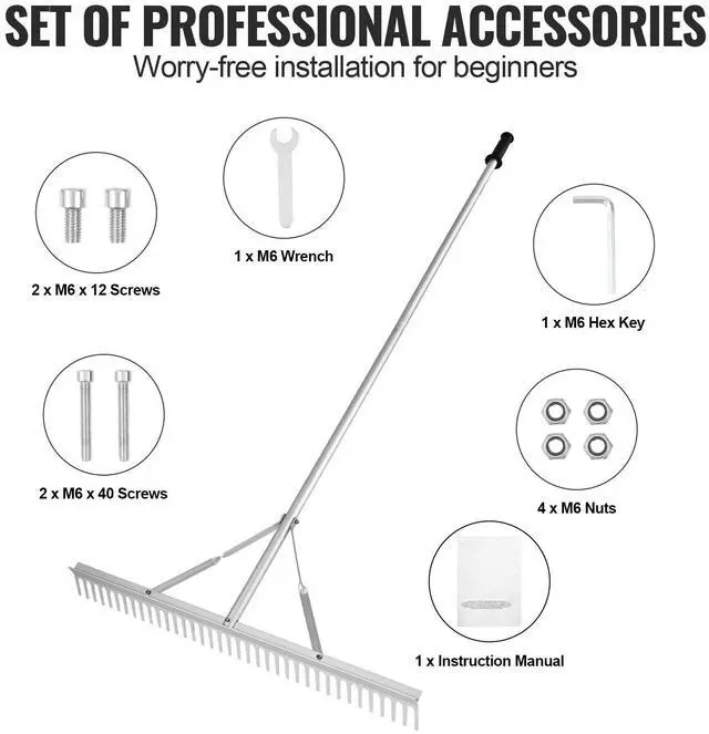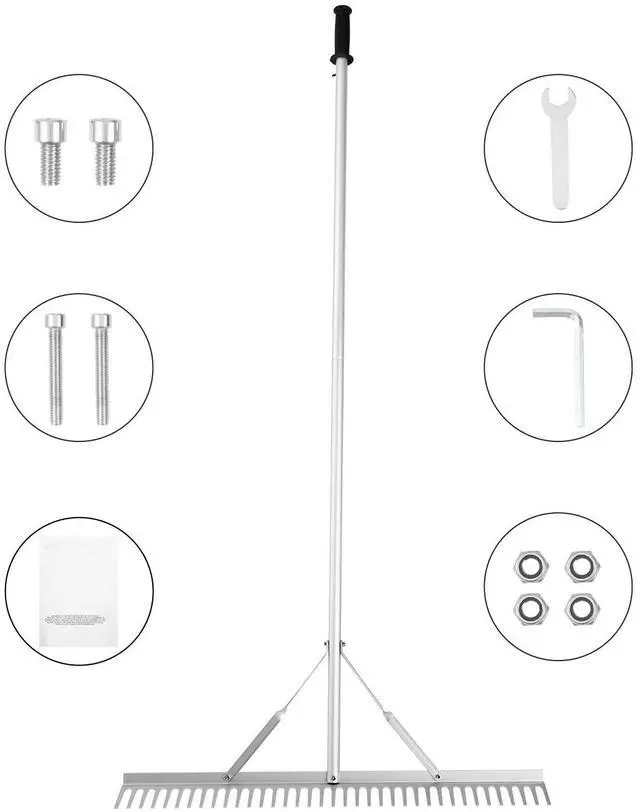 VEVOR Landscape Rake, 36" Head Aluminum Landscape Rake, Lake Weed Rake with 75" Long Handle, for Loosening Soil, Lawn Care, Weeding Lake, Garden, Pond Efficient Cleaning Easy Assembly Beginner-Friendly Robust Durability Land and Water Landscape Rake Tackle Diverse Tasks