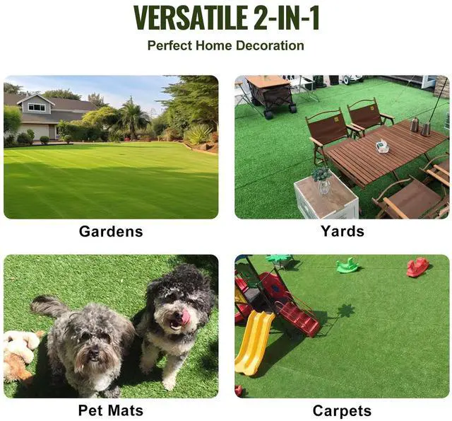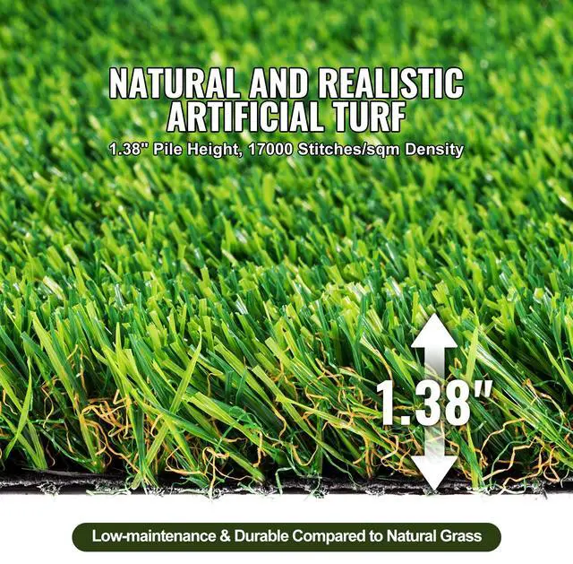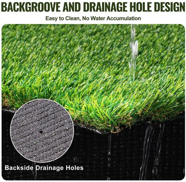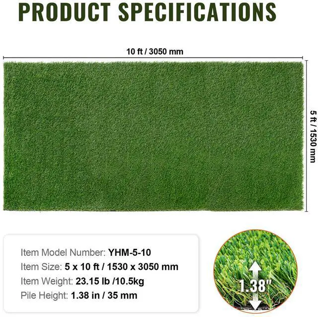 VEVOR Artifical Grass, 5 x 10 ft Rug Green Turf, 1.38"F ake Door Mat Outdoor Patio Lawn Decoration, Easy to Clean with Drainage Holes, Perfect For Multi-Purpose Home Indoor Entryway Scraper Dog Mats Durable PP+PE Material Thoughtful Design Backside Groove and Drainage Hole Design Various Applications Simple Installation and