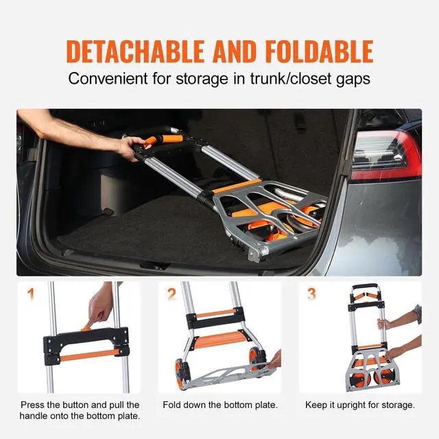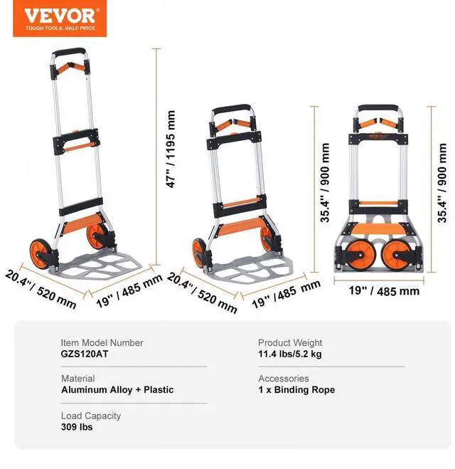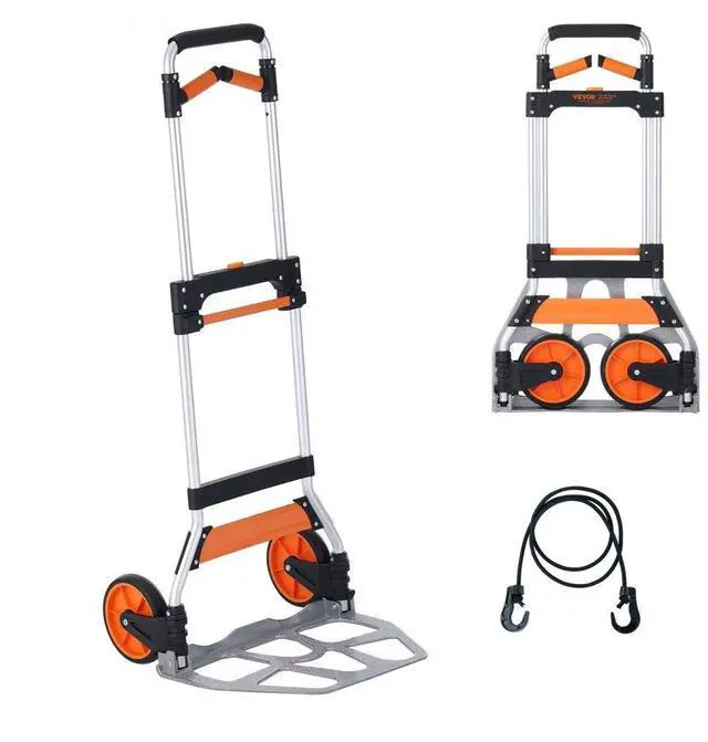 VEVOR Folding Hand Truck, 309 lbs Load Capacity, Aluminum Portable Cart, Convertible Hand Truck and Dolly with Telescoping Handle and PP+TPR Wheels, Ultra Lightweight Super Strong for Moving Warehouse 309 lbs Folding Hand Truck Sturdy and Durable Adjustable Handle Easy to Carry It's All in the