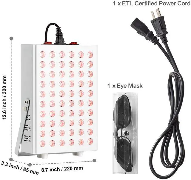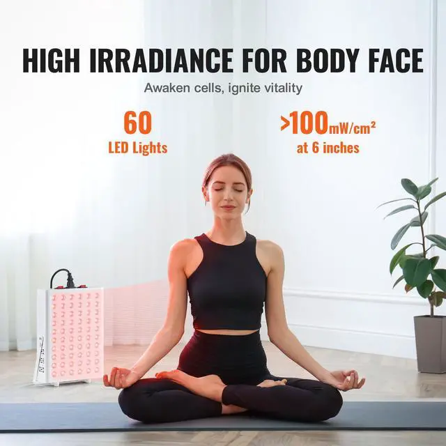 • VEVOR Red Light Therapy for Body Face, 60 Dual-Chip LEDs, Red 660nm & Near Infrared 850nm Combo, High Power Red Light Therapy Panel for Recovery, Pain Relief, Wound Healing, Skin Health, 80W