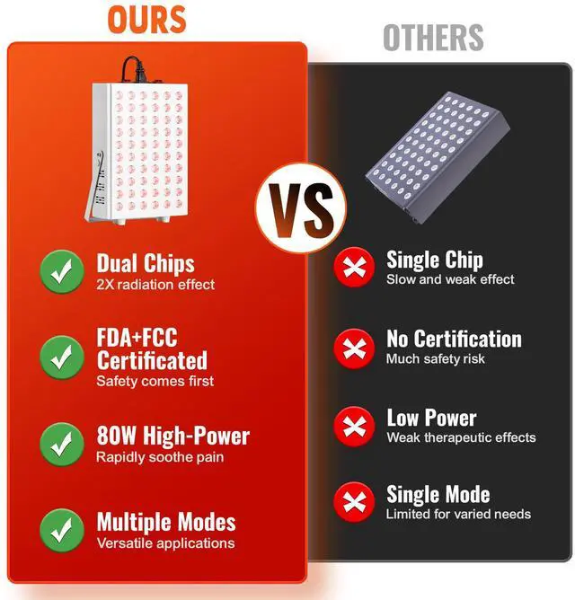 VEVOR Red Light Therapy for Body Face, 60 Dual-Chip LEDs, Red 660nm & Near Infrared 850nm Combo, High Power Red Light Therapy Panel for Recovery, Pain Relief, Wound Healing, Skin Health, 80W Exceptional Irradiance Tailored for You Certified Safety Flexible and Portable The Perfect Gift Efficient Cooling for