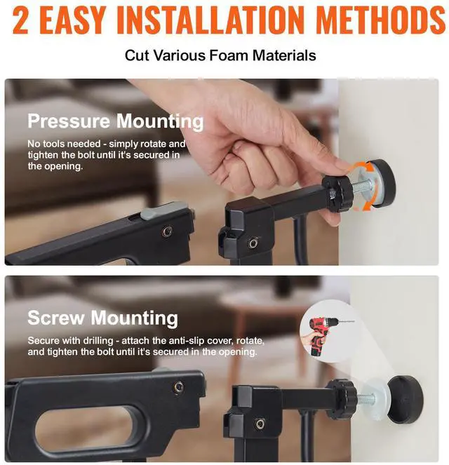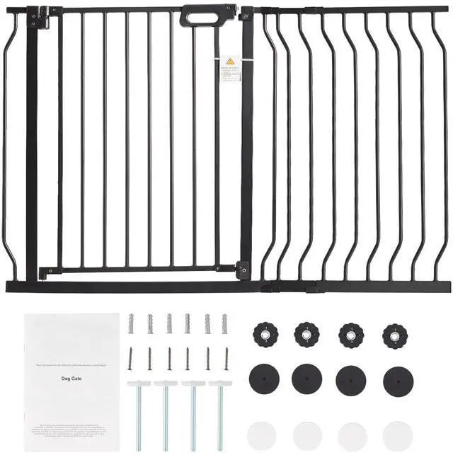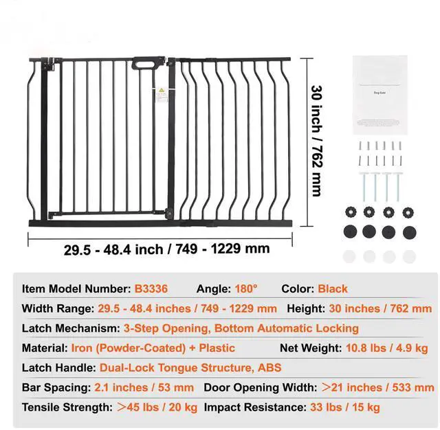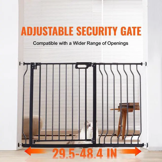 VEVOR Baby Gate, 29.5" - 48.4" Extra Wide, 30" High, Dog Gate for Stairs Doorways and House, Easy Step Walk Thru Auto Close Child Gate Pet Security Gate with Pressure Mount Kit and Wall Mount Kit, Black Guardian of Your Little One Smart Dual-Lock Tech Designed for Convenience & Security Upgraded No-Drill Installation Versatile Uses Galore Two Trendy Shades
