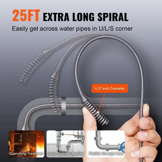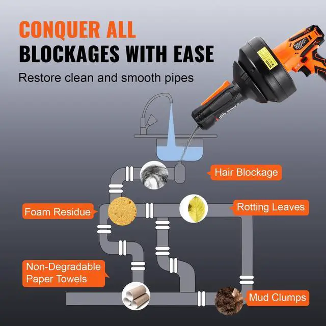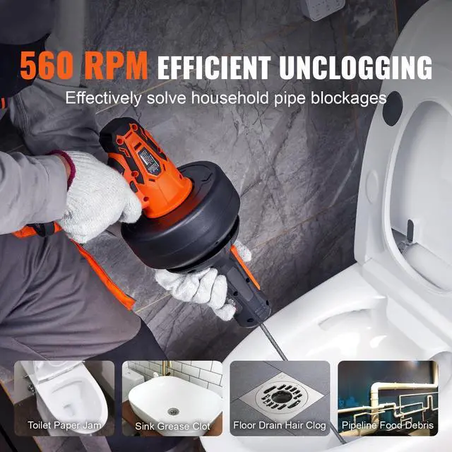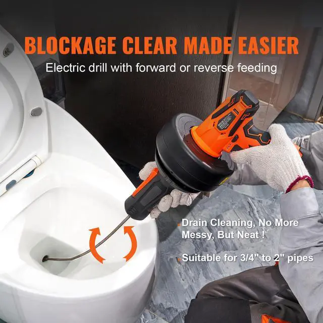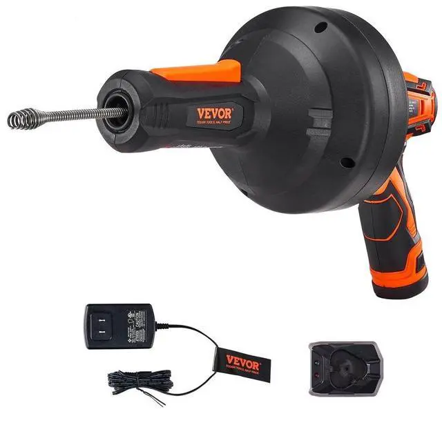 VEVOR 12V Electric Drain Auger, 25FT Cordless Plumbing Snake Auto Feed, Pipeline Snake Drain Clog Remover with Power Drill for 3/4"-2" Pipes, 2.0A h Battery and Charger Included Attack Stubborn Clogs Quality & Durable Cable Labor-saving Handle Auto Feeding High Capacity Battery Versatile Professional Use Say goodbye to tangled wires. The wireless design makes it easy to carry and perfect for both indoor and outdoor use.