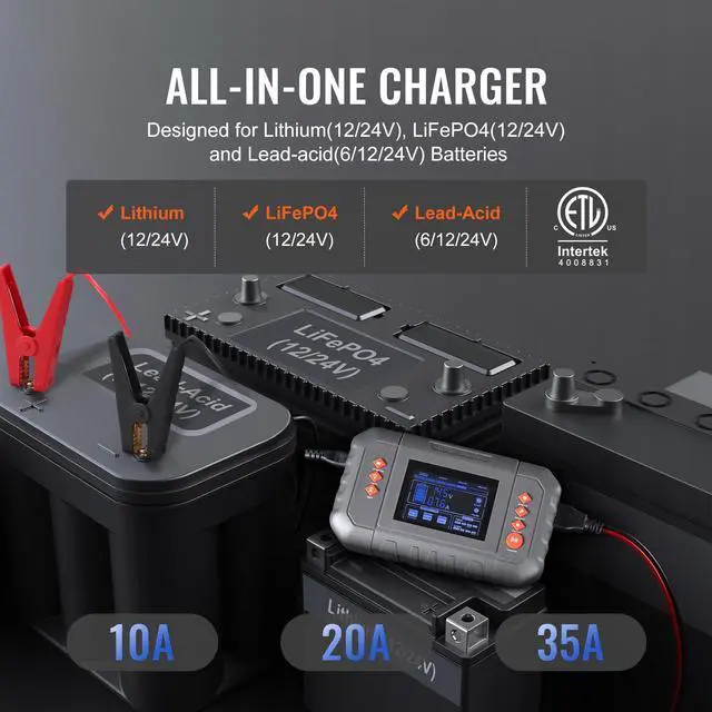 VEVOR Smart Battery Charger, 35-Amp, Lithium LiFePO4 Lead-Acid (AGM / Gel / SLA) Car Battery Charger with LCD Display, Trickle Charger Maintainer Desulfator for Boat Motorcycle Lawn Mower Deep Cycle Versatility at Its Best Smart Charging Boosted Efficiency Adapts to Environmental Temperature Trusted Battery Companion Charge Your