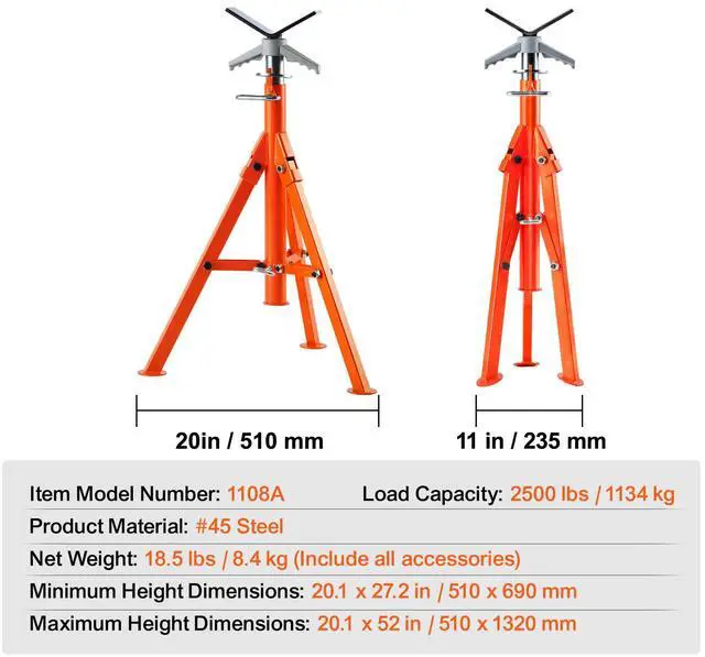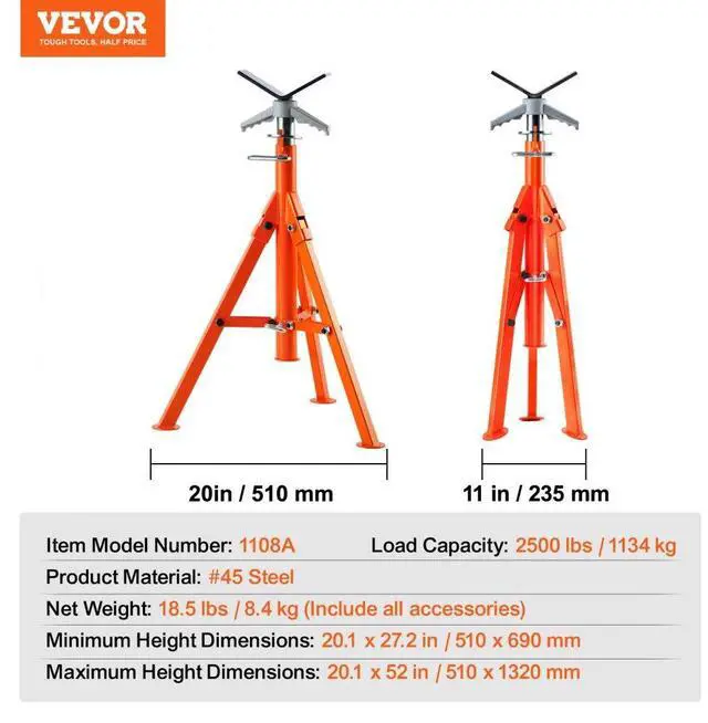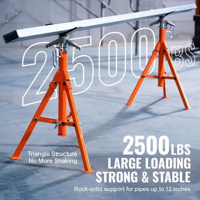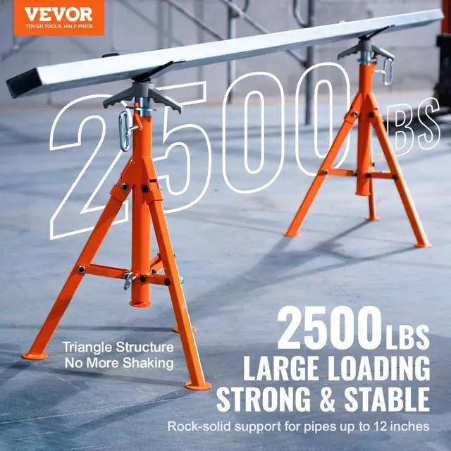 VEVOR Pipe Stand, 2500LBS Heavy Duty Pipe Jack Stands, 27.2" -52" Height Adjustable V Head Pipe Stand, 45# Steel Folding Jack Stand for 1/2-12 inches Pipes Effortless Height Adjustment Versatile Applications Rugged Durability Compact Storage Sturdy Pipe Support Efficiency Boost