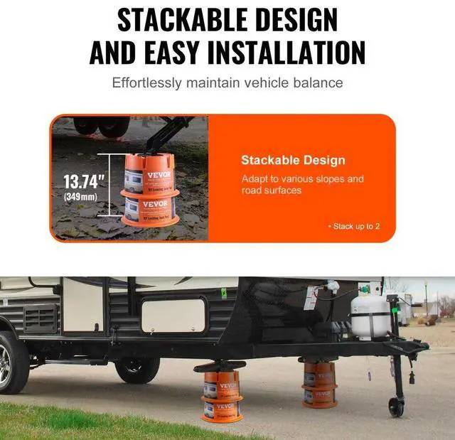 VEVOR Trailer Jack Block, 2000 lbs Capacity per RV Leveling Block, High-quality Polypropylene RV Camper Stabilizer Blocks, RV Travel Accessories Use for Any Tongue Jack, Post, Foot, 5th Wheels, 2-Pack Rapid Leveling Durable Rubber Build Expanded Floor Space Efficient Drainage Easy Installation Versatile Vehicle