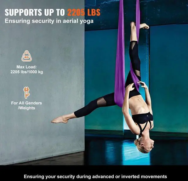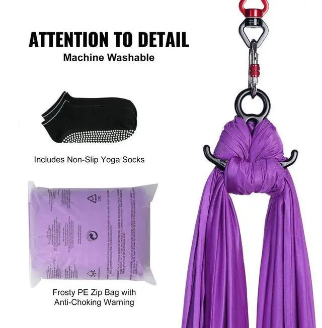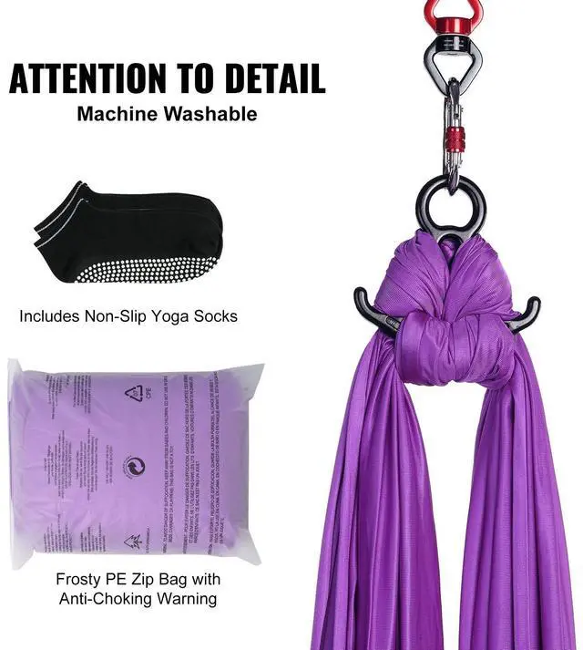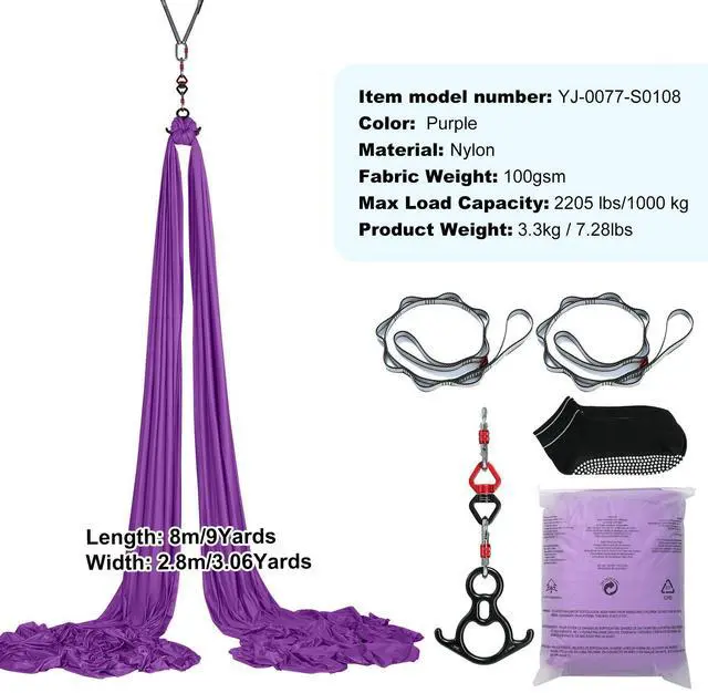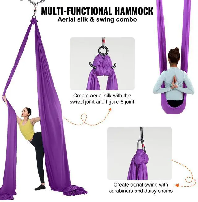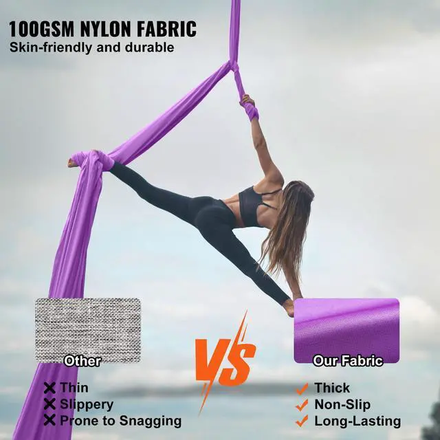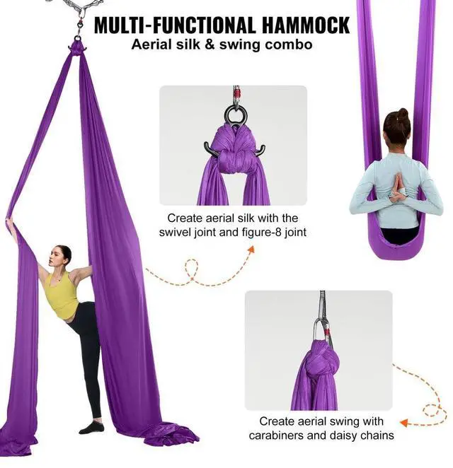 VEVOR Aerial Silk & Yoga Swing, 8.7 Yards, Aerial Yoga Hammock Kit with 100gsm Nylon Fabric, Full Rigging Hardware & Easy Set-up Guide, Antigravity Flying for All Levels Fitness Bodybuilding, Purple Premium Nylon Fabric Impressive Weight Capacity Extra Length for Versatility Complete Set of Accessories Attention to