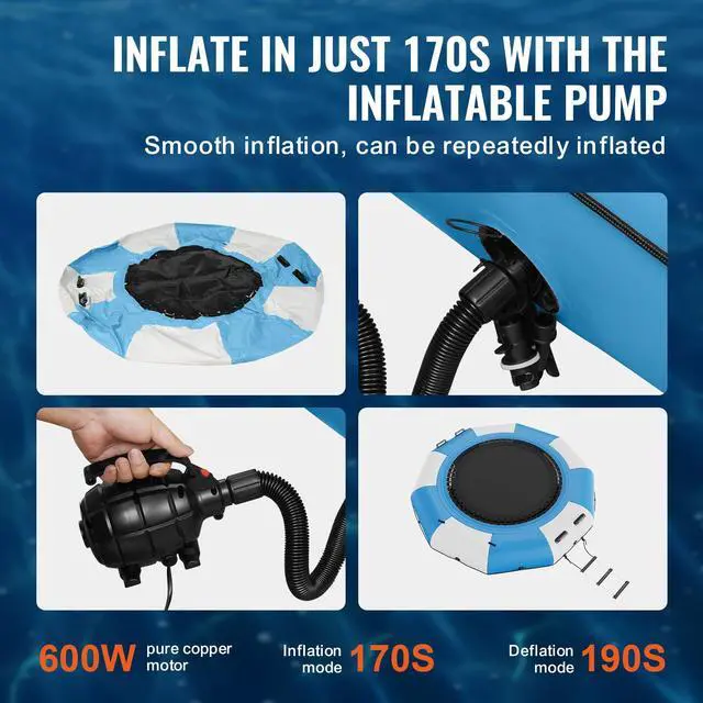 VEVOR Inflatable Water Bouncer, 10ft Recreational Water Trampoline, Portable Bounce Swim Platform with Slide, 3-Step Ladder & Electric Air Pump, Kid Adult Floating Rebounder for Pool Lake Water Sports Two Color Options Premium Materials Quick Inflation User-friendly Design Versatile Application Complete Accessories Item