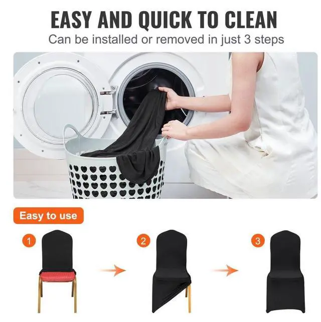 VEVOR Stretch Spandex Folding Chair Covers, Universal Fitted Chair Cover, Removable Washable Protective Slipcovers, for Wedding, Holiday, Banquet, Party, Celebration, Dining (30PCS Black) Premium Material Superior Performance Multi-Chair Compatibility Easy to Use and Clean Widely Applicable Good Elastic Fabric Fits Chair