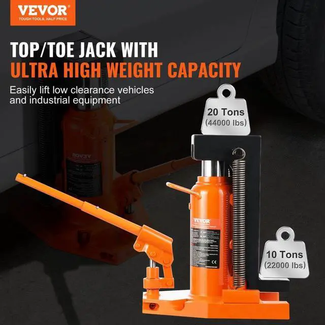 VEVOR Hydraulic Toe Jack, 10 Ton On Toe Toe Jack Lift, 20 Ton On Top Lift Capacity Machine Jack, 1.2 - 7.5 in Toe Height, 12.6 - 18.9 in Top Height, Air Hydraulic Claw Jack for Machinery, Industry Robust Weight Capacity Meets Different Height Requirements Convenient and Effortless Lifting Rust-Resistant Seamless Welded Steel Safe and Smooth Operation Portable and Easy to Carry