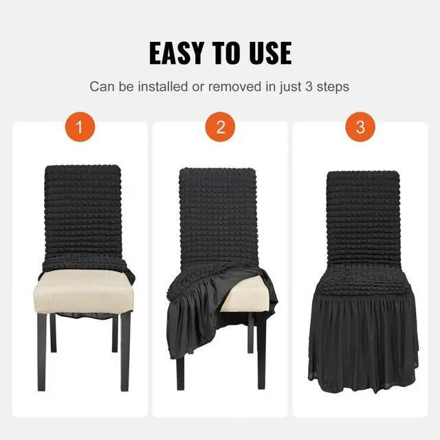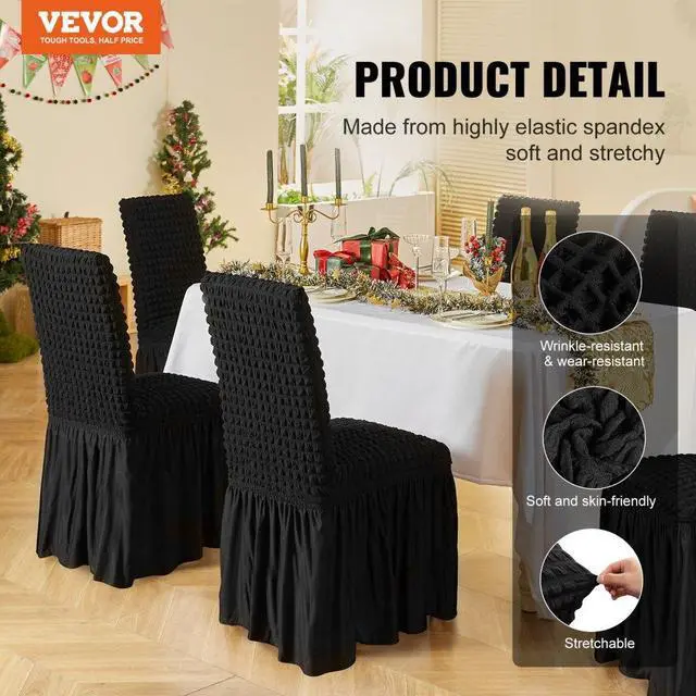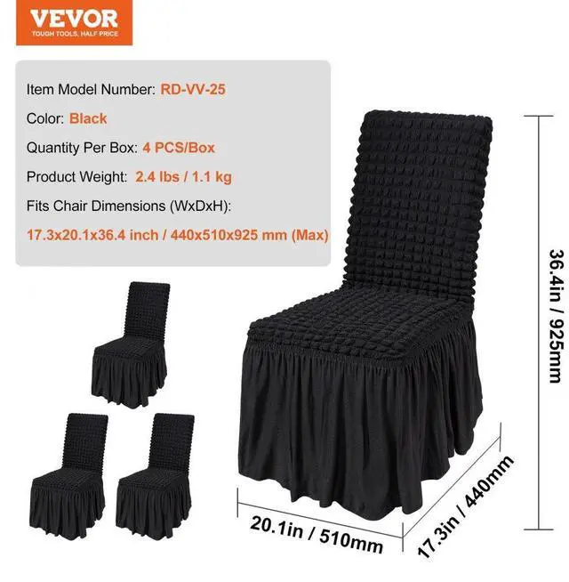 VEVOR Stretch Spandex Folding Chair Covers, Universal Fitted Chair Cover with Skirt, Removable Washable Protective Slipcovers, for Wedding, Holiday, Banquet, Party, Celebration, Dining (4 PCS Black) Premium Material Superior Performance Multi-Chair Compatibility Easy to Use and Clean Widely Applicable Good Elastic Fabric Fits Chair