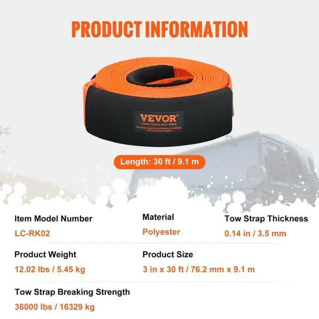 Long-lasting Tow Strap Thickness: 0.14 in/ 3.5 mm, Item
