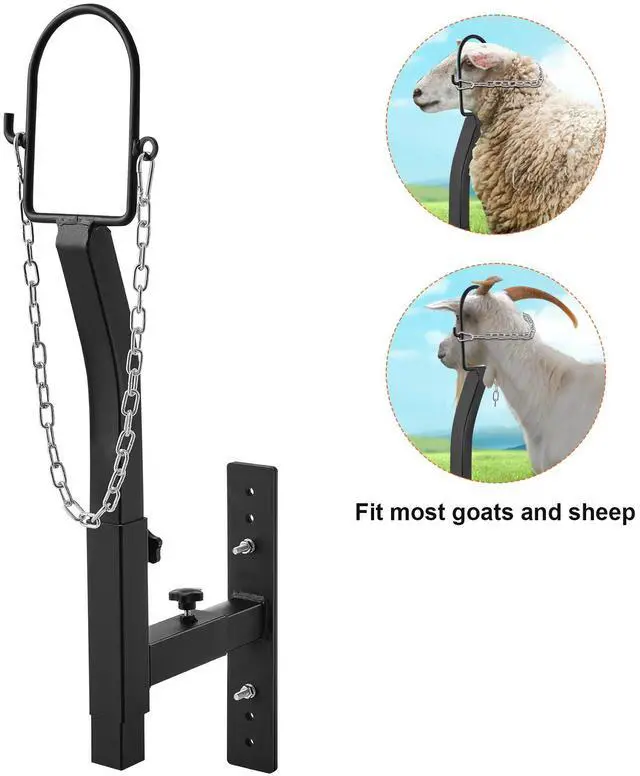 VEVOR Livestock Trimming Stand, Goat & Sheep Stand 9.37 - 12.8 inch Adjustable Height 0- 5.4 inch Width, Metal Goat Milking and Shearing Stand Attachment Nose Loop Headpiece, Black Farm Goat Stand Flexible Adjustment Efficient Trimming Easy Assembly Wide Usages Corrosion-proof