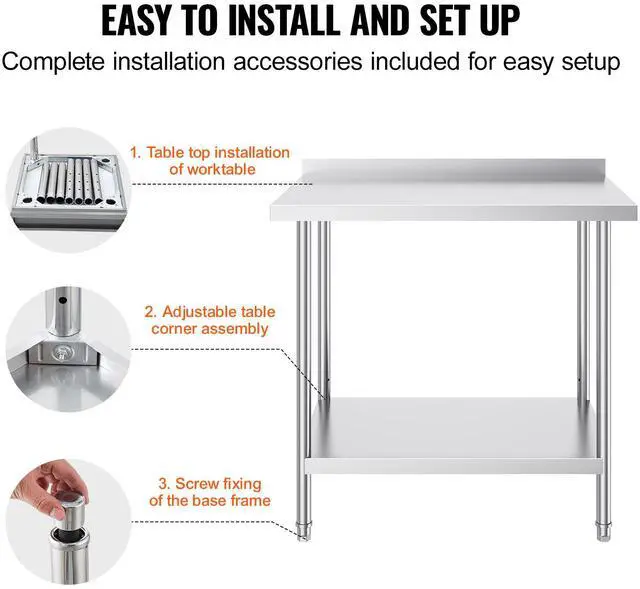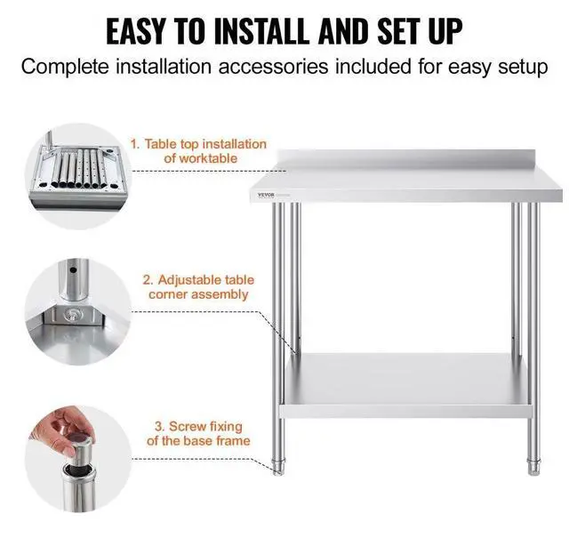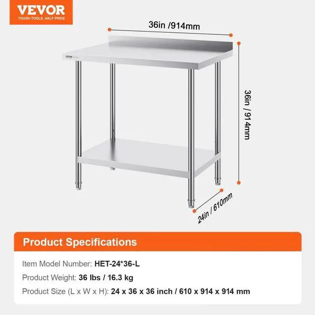 VEVOR 24 x 36 x 36 Inch Stainless Steel Work Table, Commercial Food Prep Worktable Heavy Duty Prep Worktable, Metal Work Table with Adjustable Height for Restaurant, Home and Hotel Stylish Work Table Multiple Styles Available Durable, Safe, and Stable Flexible Setup Easy to Install Versatile Applications Product Size (L x W x