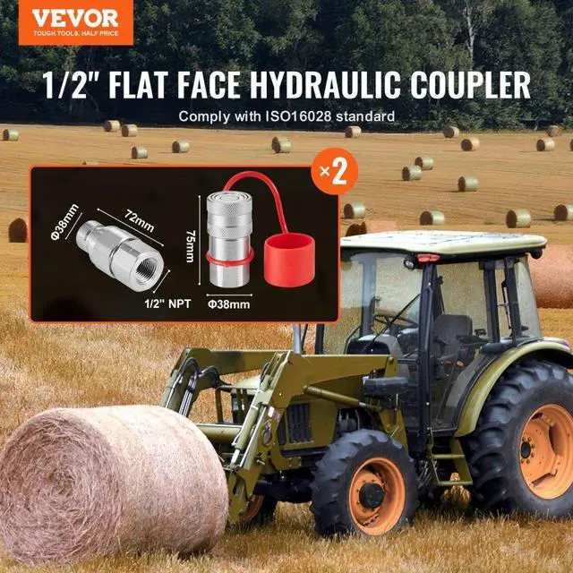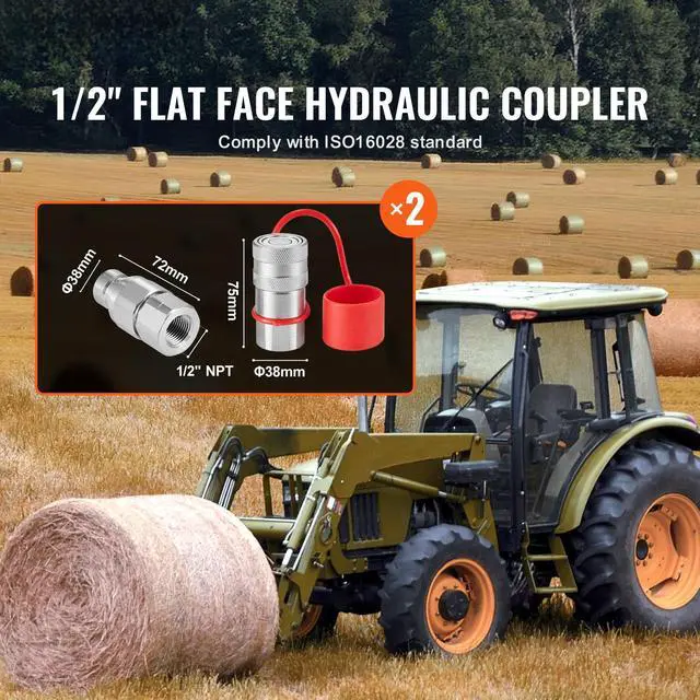• Standards Compliant: This hydraulic coupler features a 1/2" body size, with 1/2" NPT thread size for both the male and female couplers, adhering to ISO 16028 standards, making it ideal for connecting hydraulic lines.
