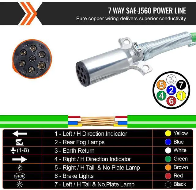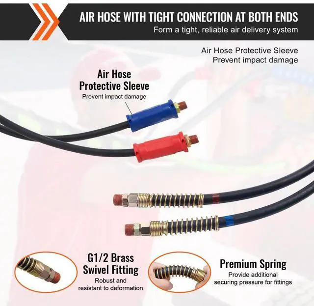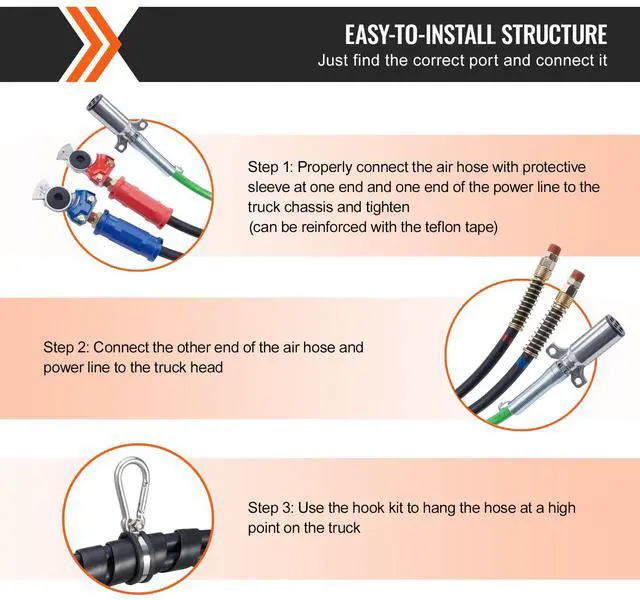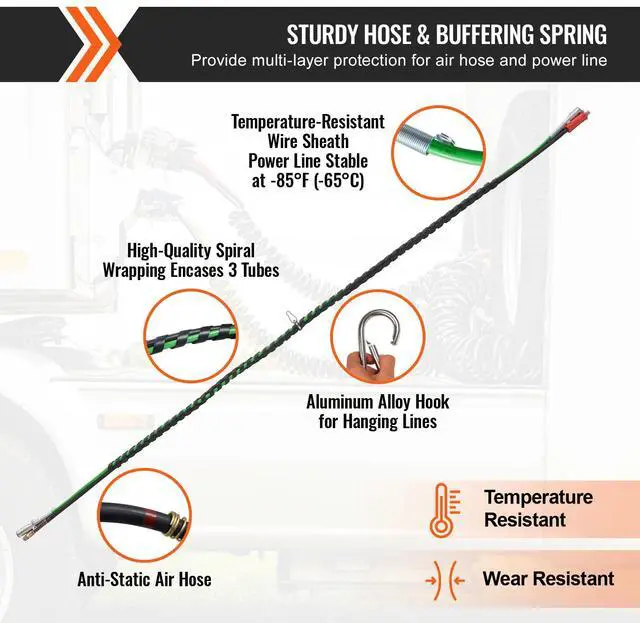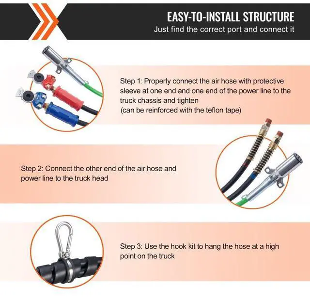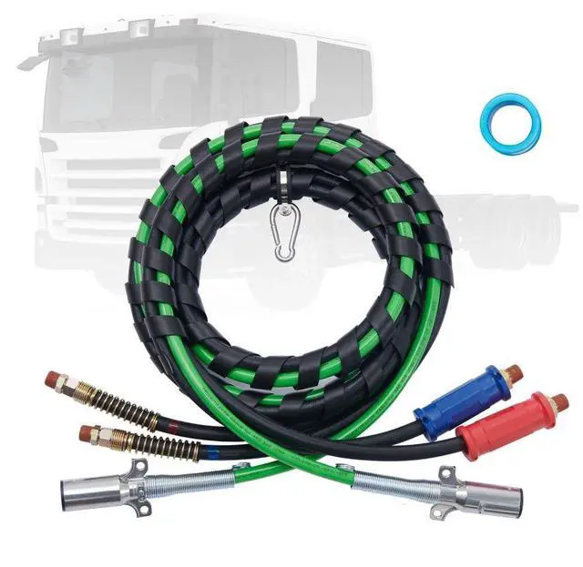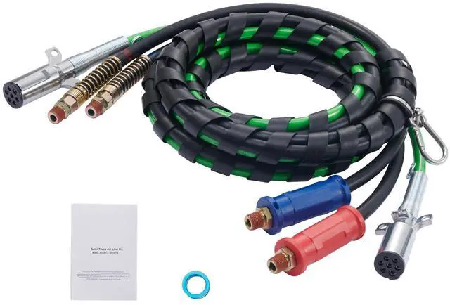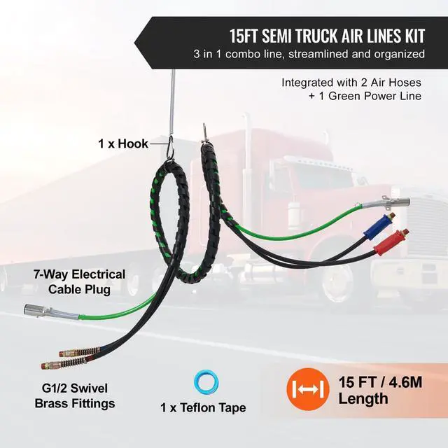 VEVOR 12FT Semi Truck Air Lines Kit, 3-in-1 Air Hoses & ABS Power Line for Semi Truck Trailer Tractor, 7-Way Plug Electrical Cord Cable and Rubber Air Lines Hose Assembly Kit with Hook & Teflon Tape Seamless Air Transmission Pipeline 7-Way Pure-Copper Power Line Serve For Longer Safe Service Life Simple Design, Easy Installation High Quality 3 in 1