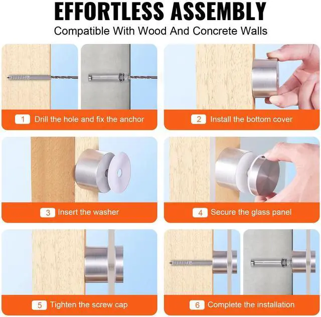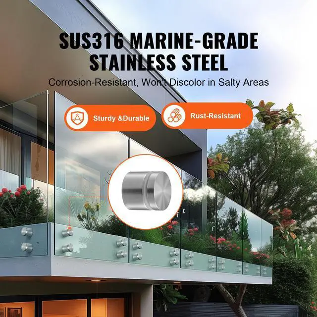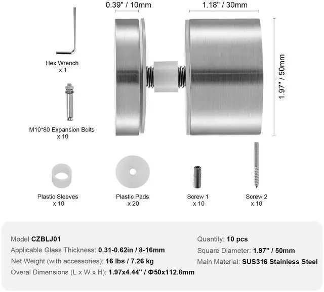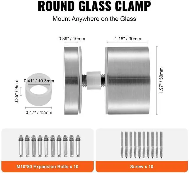VEVOR Glass Clamp, 10 PCS Round Glass Railing Bracket for 0.31 "- 0.62 " Tempered Glass, 316 Stainless Steel Glass Mounting Clamp, Glass Shelf Bracket for Balcony, Garden, Pool, Stair, Silver High-Quality, Strong Load-Bearing High-Quality and Strong Load-Bearing Safe and Smooth Edges Complete Set Wide Application Polished Finish Applicable Glass Thickness: 0.31 - 0.62 in / 8-16mm,