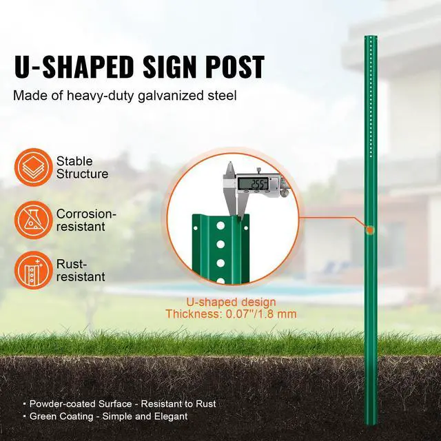VEVOR 8FT U-Channel Sign Post, 4Pack Green Heavy Duty Steel Fixed Fence Post, Steel Fence U-Channel Sign for Garden, Courtyard, Farm or Traffic Intersection High Quality Standard Size Easy Installation Wide Application Powder Coated Surface U-shaped Structure Thickness: 0.07 ''/ 1.8 mm, Length: 8 ft, Pre-drilled