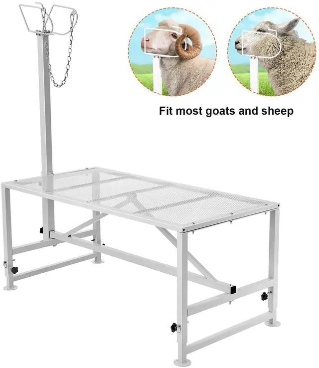 VEVOR Goat & Sheep Stand, 51x23 inch Livestock Stand, Metal Livestock Milking and Shearing Stand 21" to 33" Adjustable Height, with Headpiece and Nose Loop, 500lbs Loading Weight, White Farm Goat Stand Flexible Adjustment and Stability Reinforced