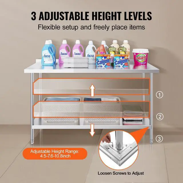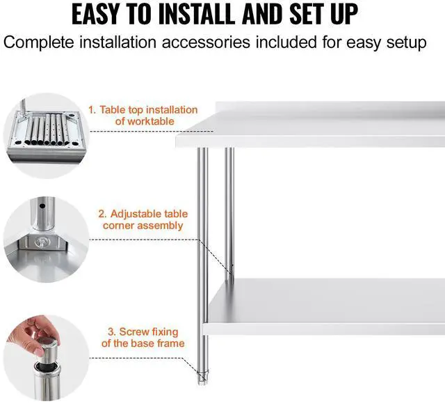 VEVOR 24 x 60 x 36 Inch Stainless Steel Work Table, Commercial Food Prep Worktable Heavy Duty Prep Worktable, Metal Work Table with Adjustable Height for Restaurant, Home and Hotel Stylish Work Table Multiple Styles Available Durable, Safe, and Stable Flexible Setup Easy to Install Versatile Applications Product Size (L x W x