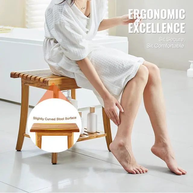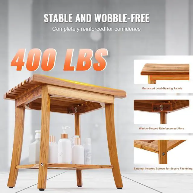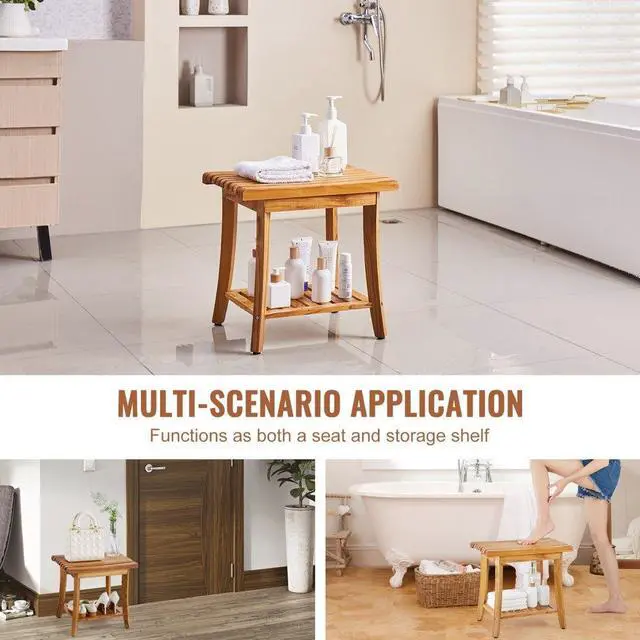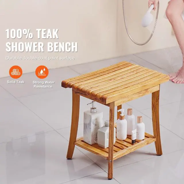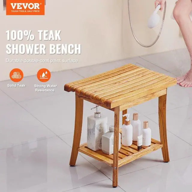 VEVOR Teak Shower Bench 20 x 14.3 x 17.9 in Wood Shower Stool Chair for Bathroom The Perfect Bathroom Addition Rock-Solid Stability Ideal for Uneven Surfaces Thoughtful Comfort